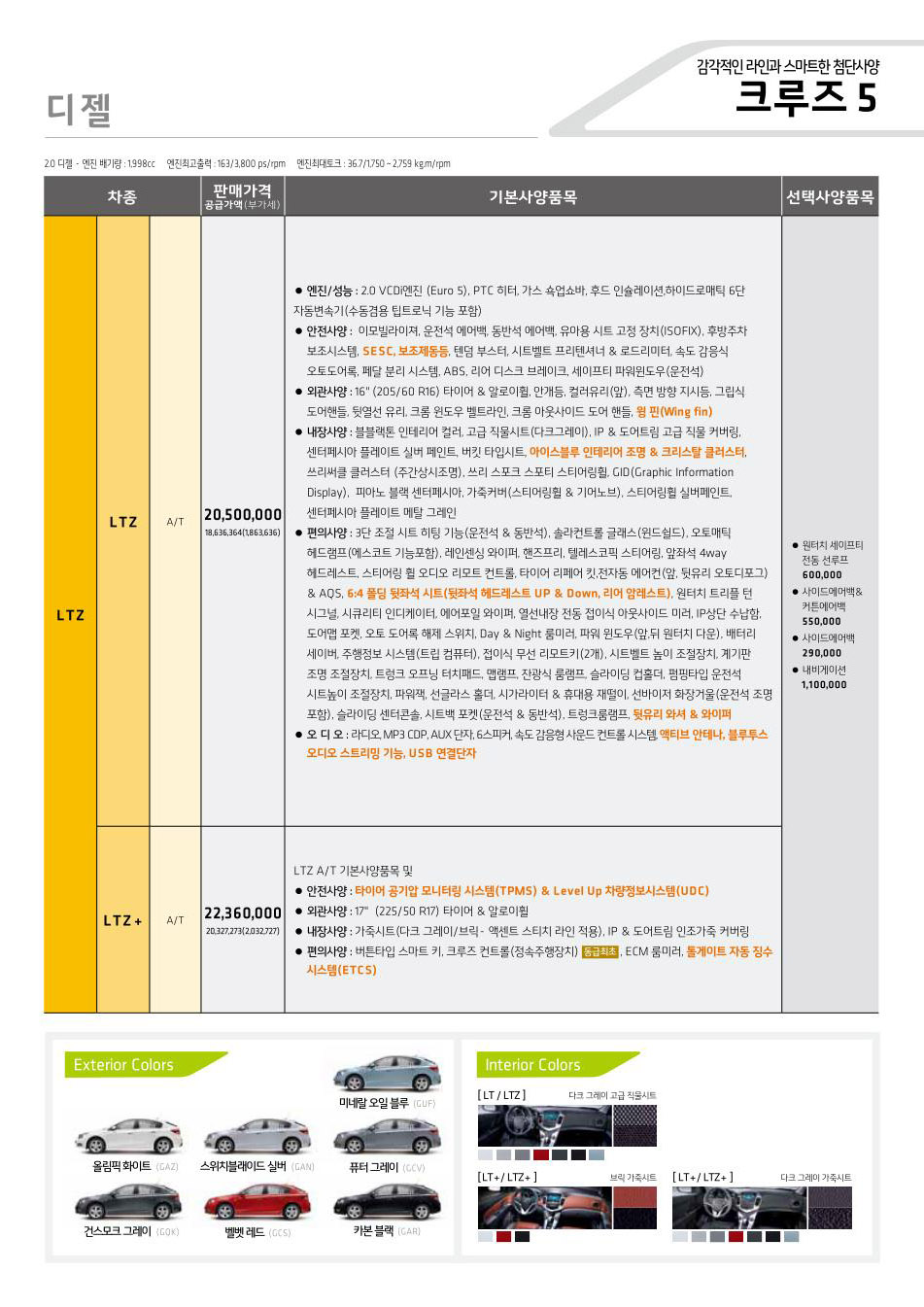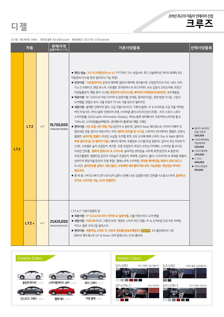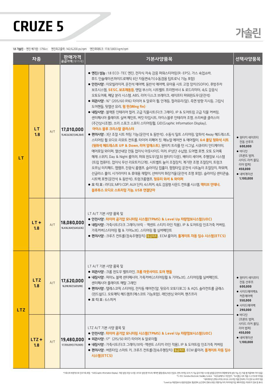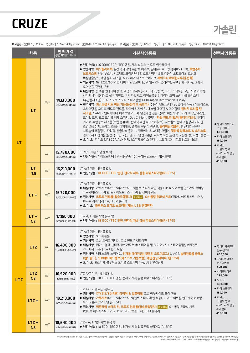 2011년 7월 크루즈 가격표 (크루즈 세단 / 2012년형 각자)