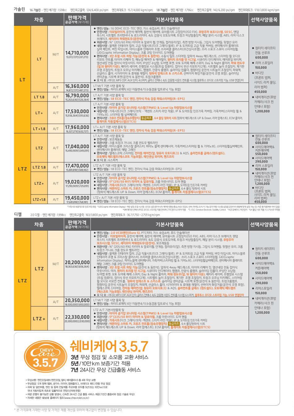 2011년 7월 크루즈 가격표 (크루즈 세단 / 2012년형 각자)