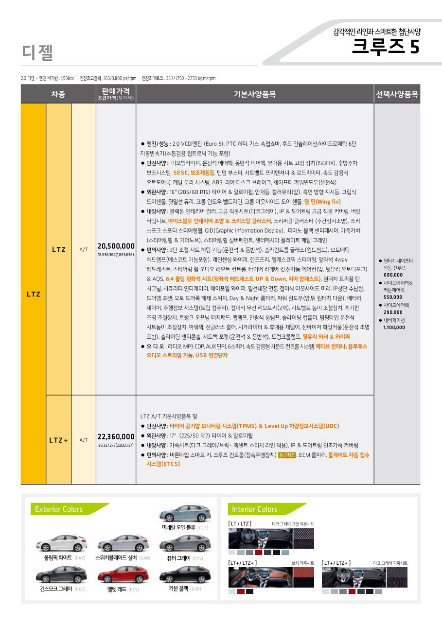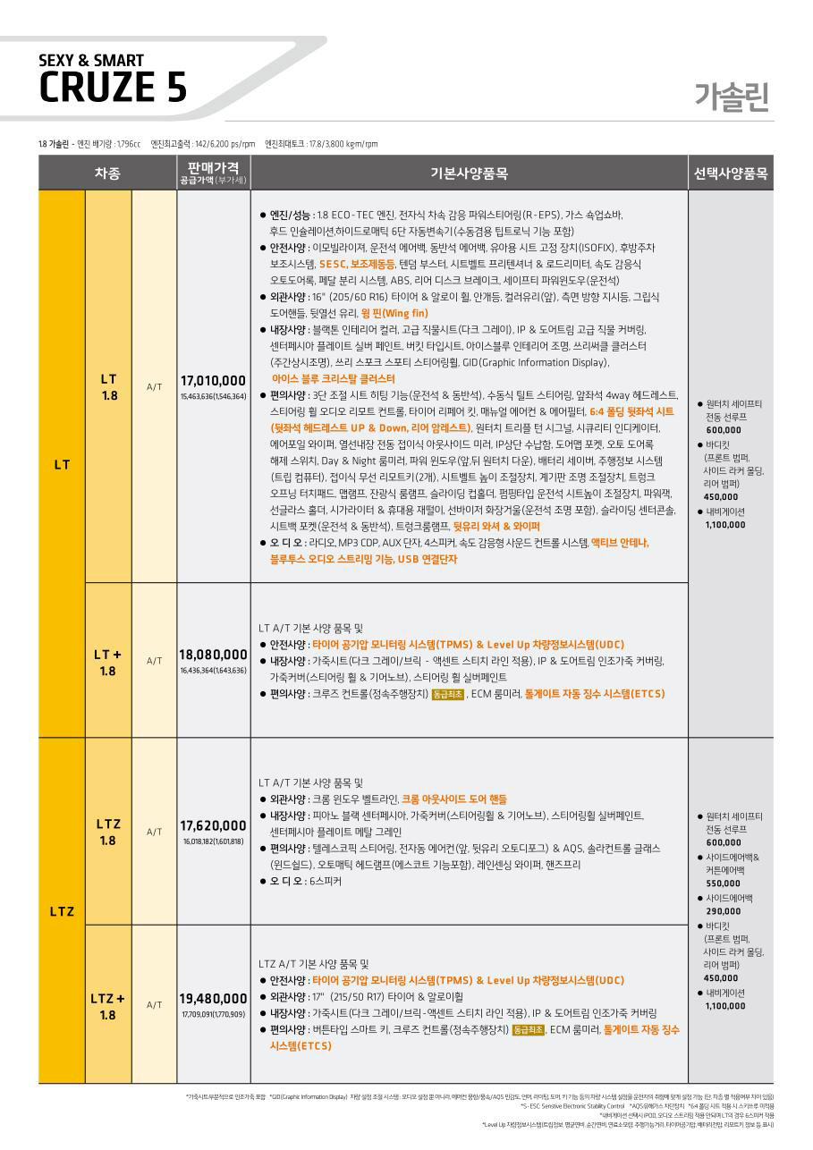 2011년 7월 크루즈 가격표 (크루즈 세단 / 2012년형 각자)