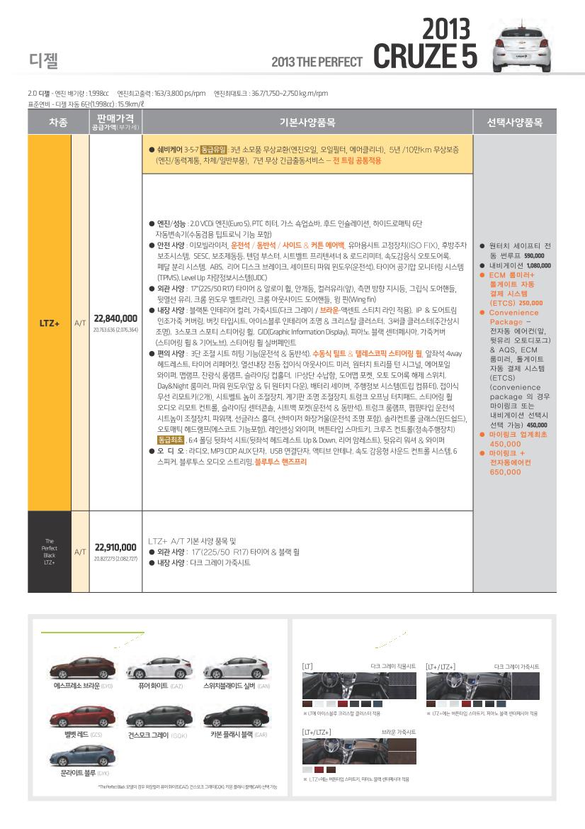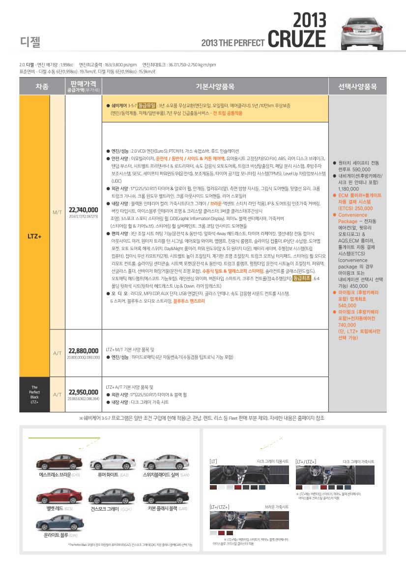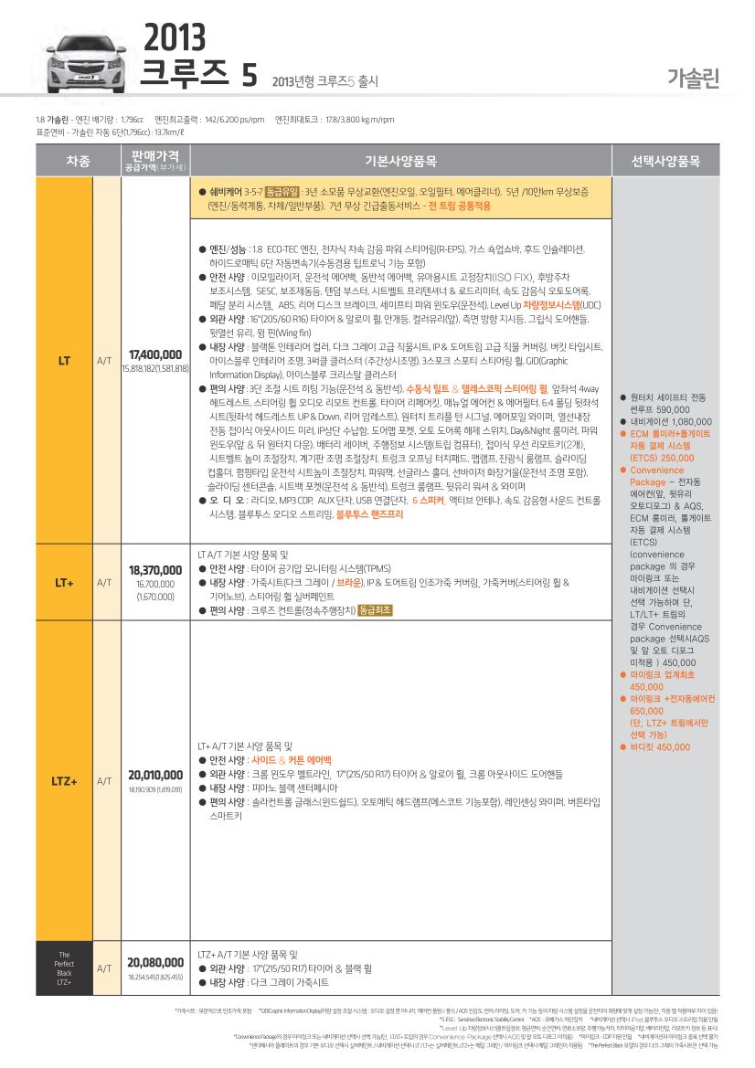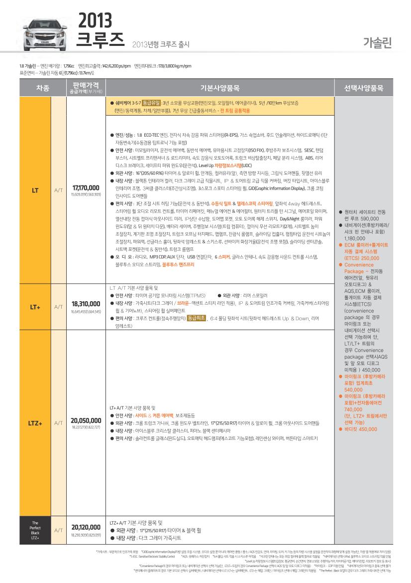 2013년 1월 크루즈 신차가격표