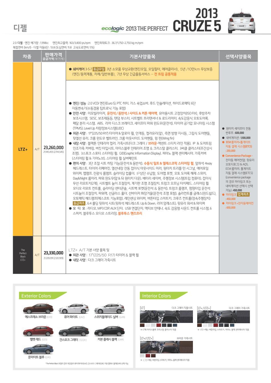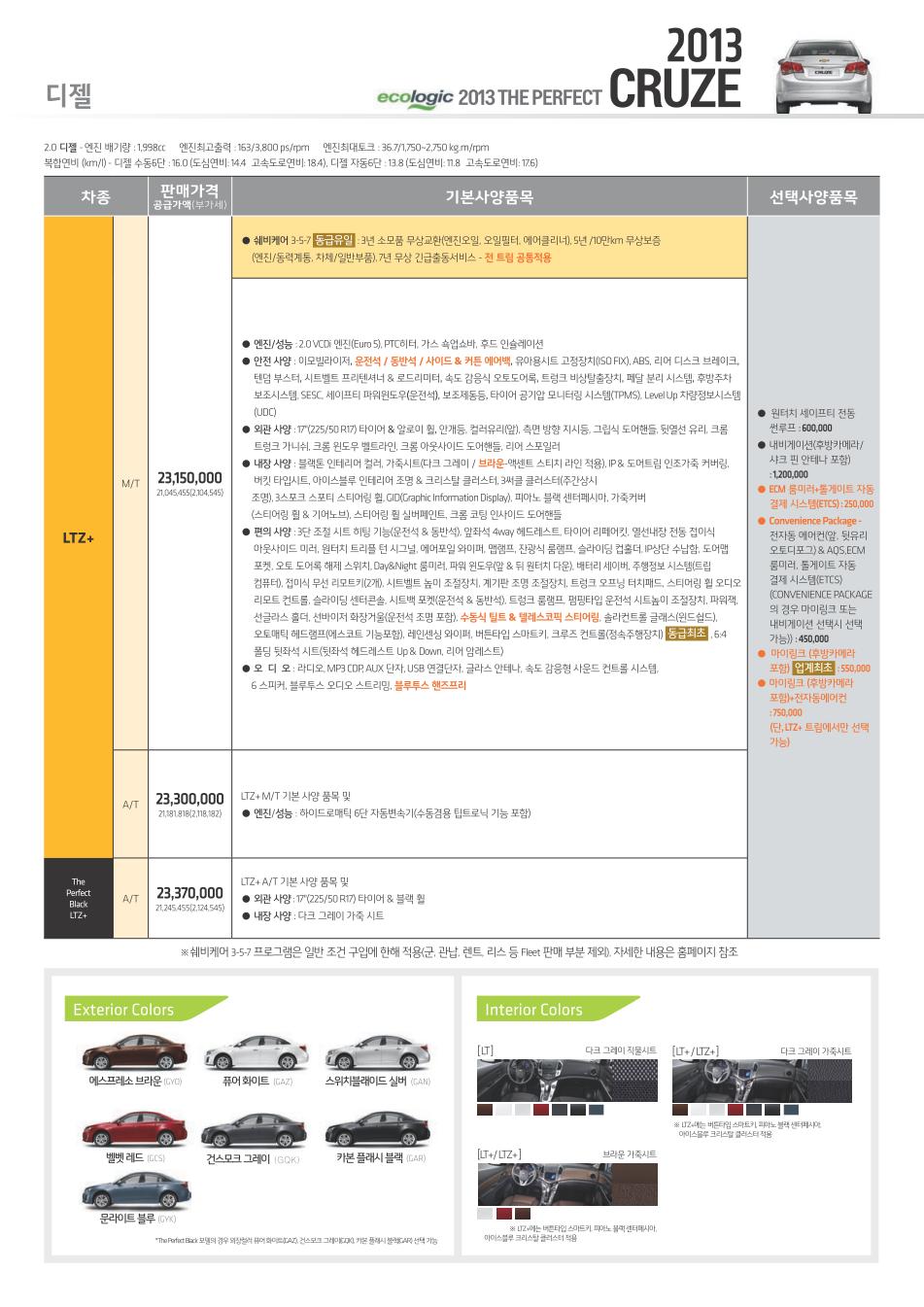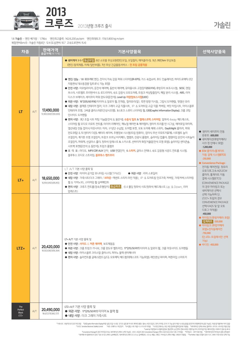2013년 4월 크루즈 신차가격표