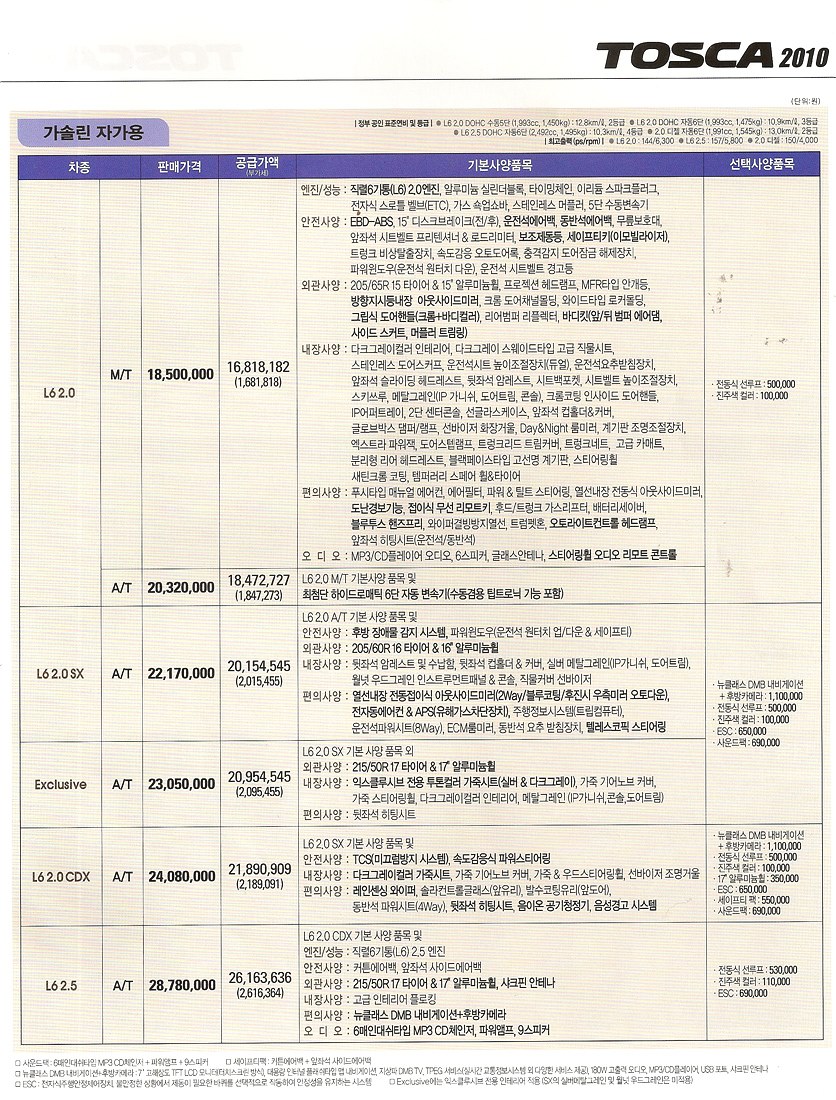 ※ 본 가격표의 모든 저작권은 해당 차량 제조사에 있습니다.