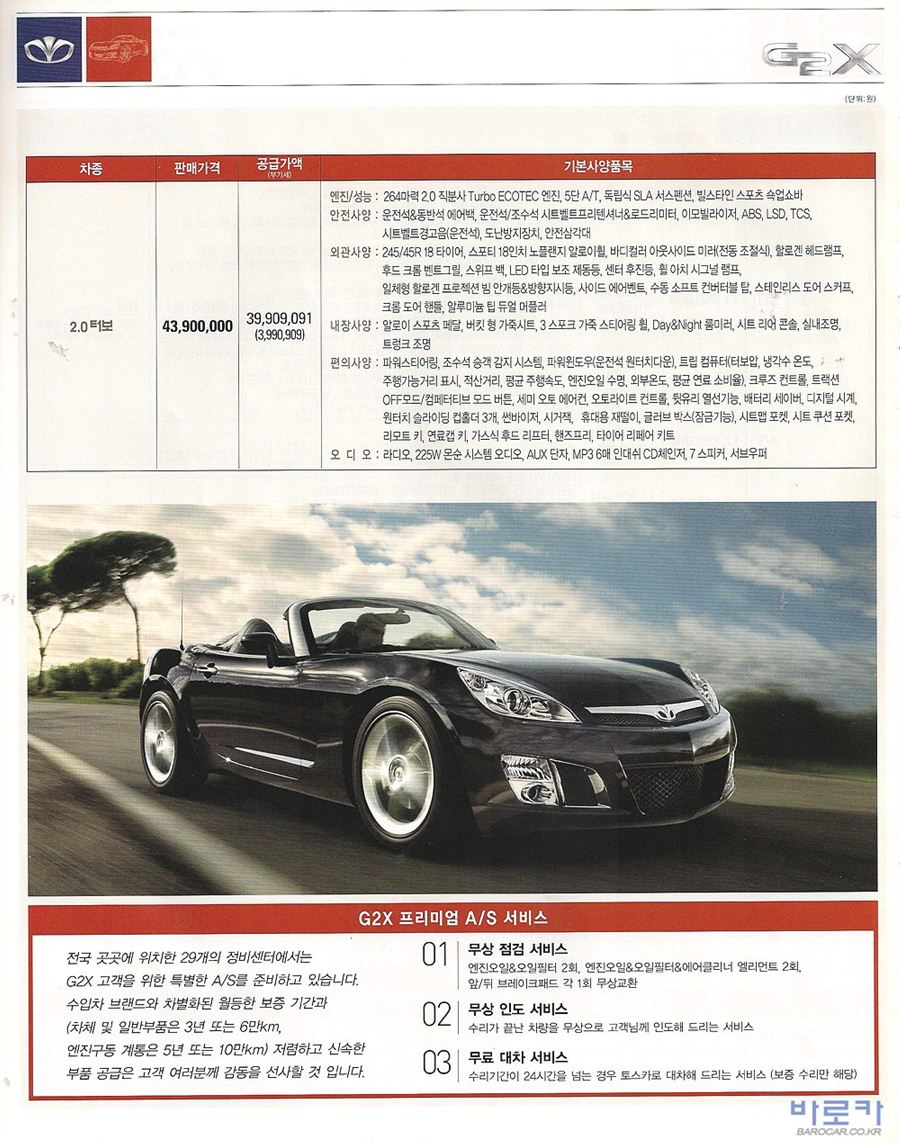 2007년 11월 G2X 신차가격표