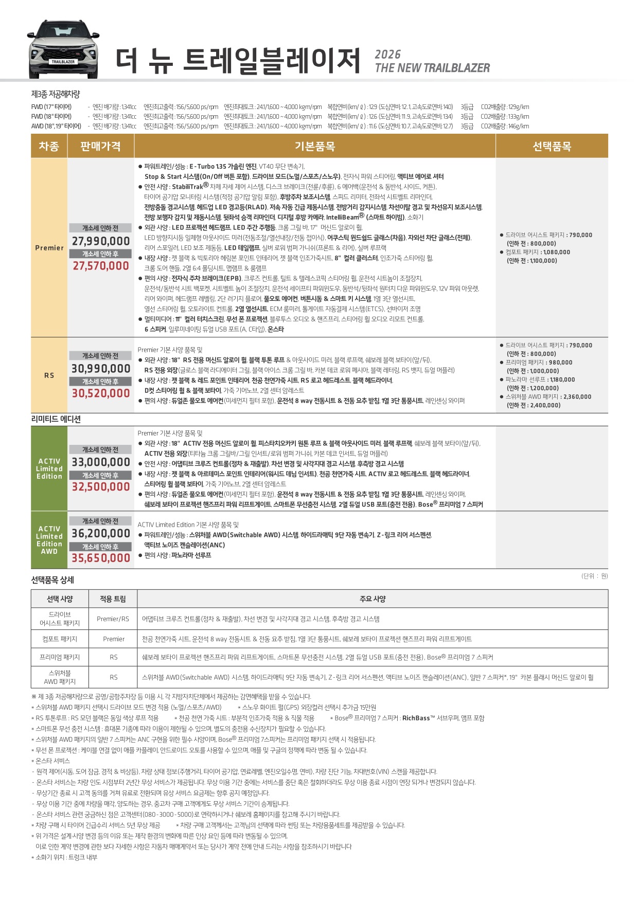 2025년 5월 트레일 블레이저 신차가격표 (2026년형 트레일 블레이저 출시)