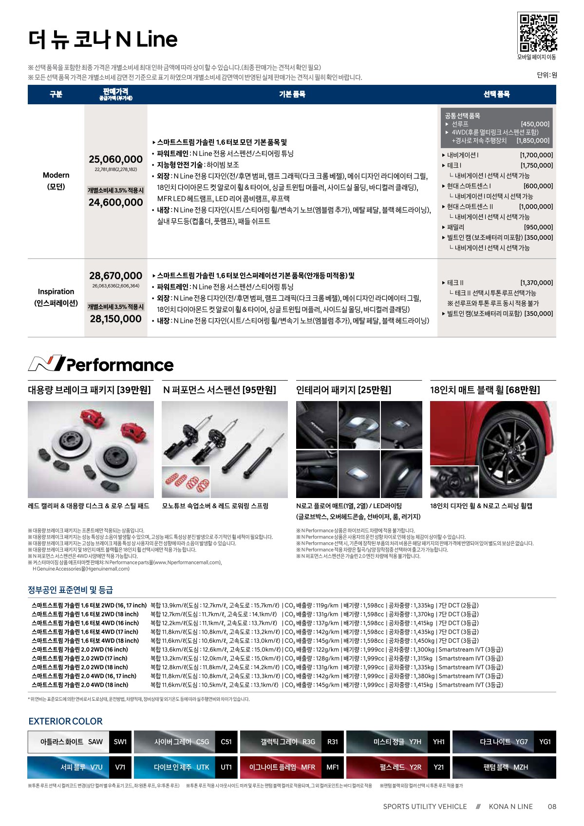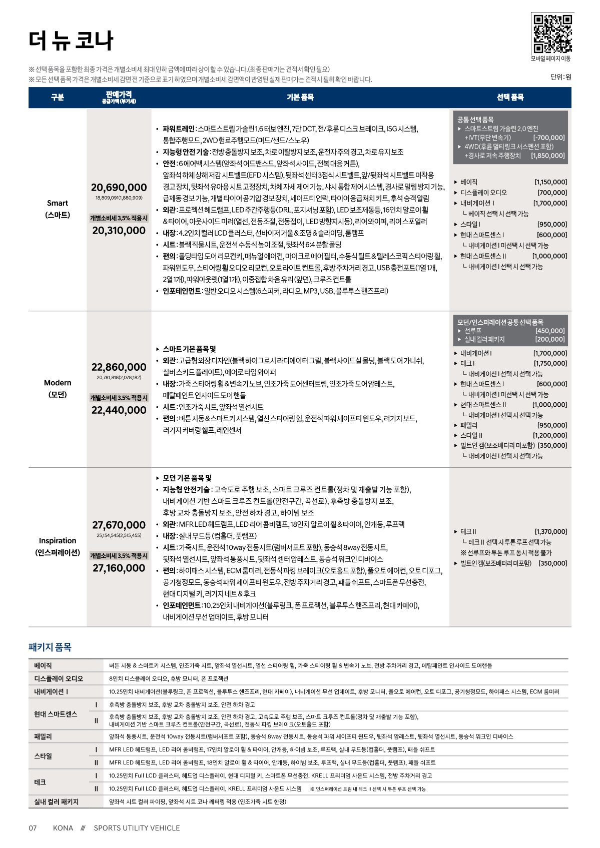 2021년 1월 코나 신차가격표 (가솔린 2.0 모델 출시)
