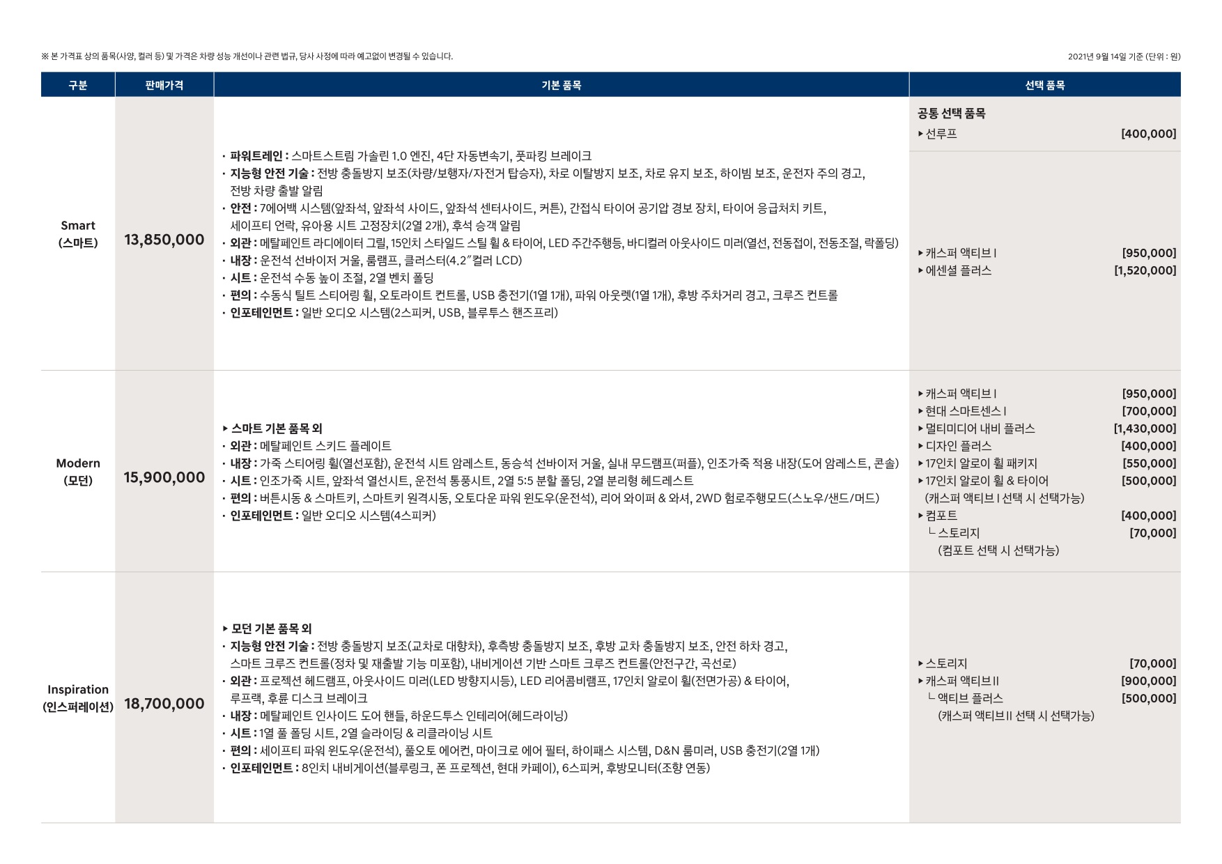 2021년 9월 캐스퍼 신차가격표 (캐스퍼 출시!!)