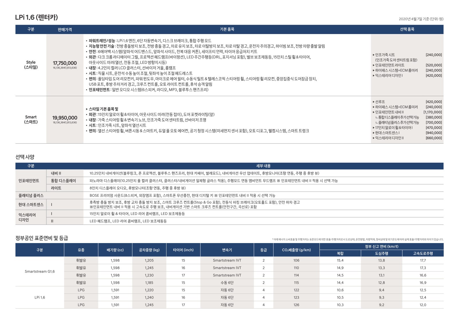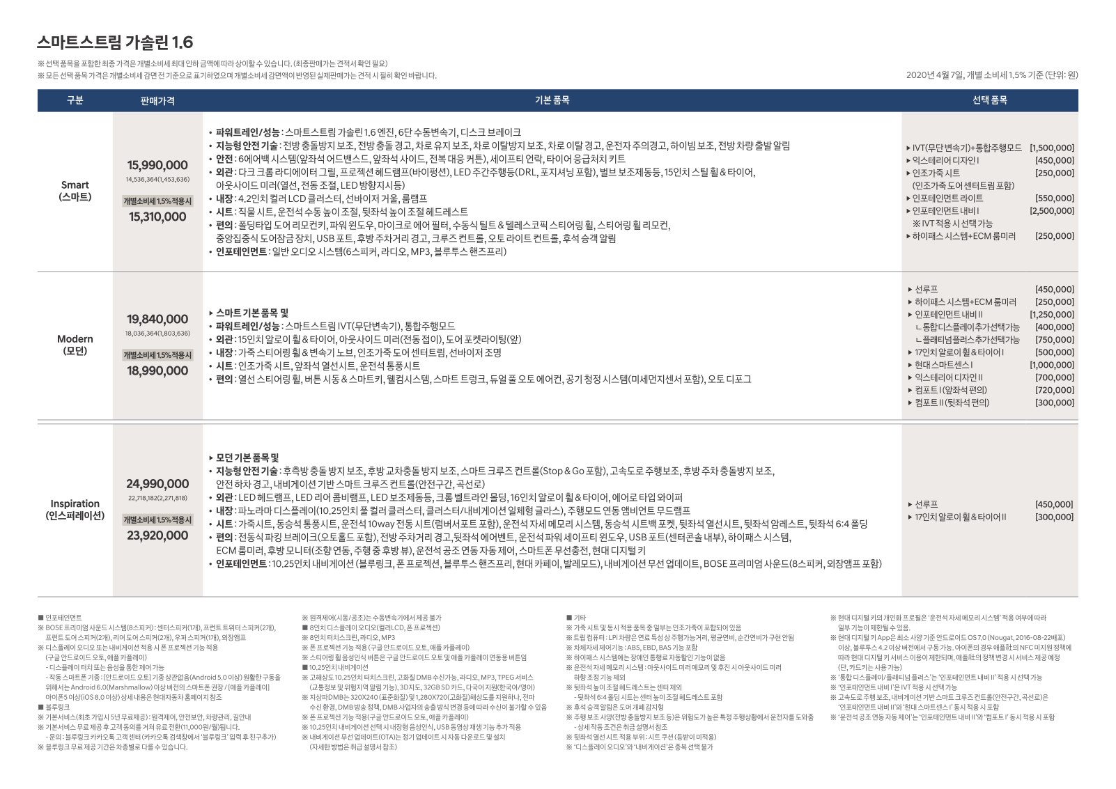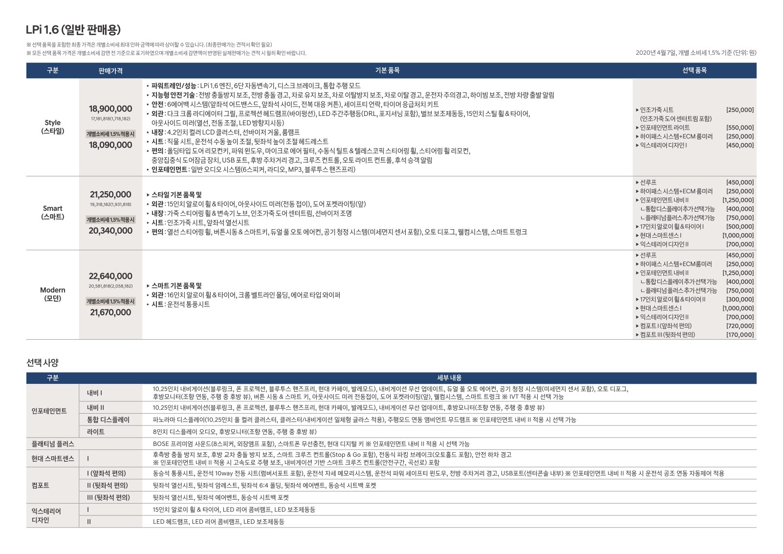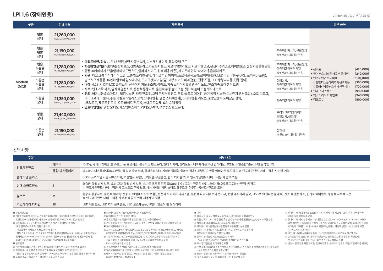 2020년 4월 아반떼 신차가격표 (아반떼CN7 신차가격표)