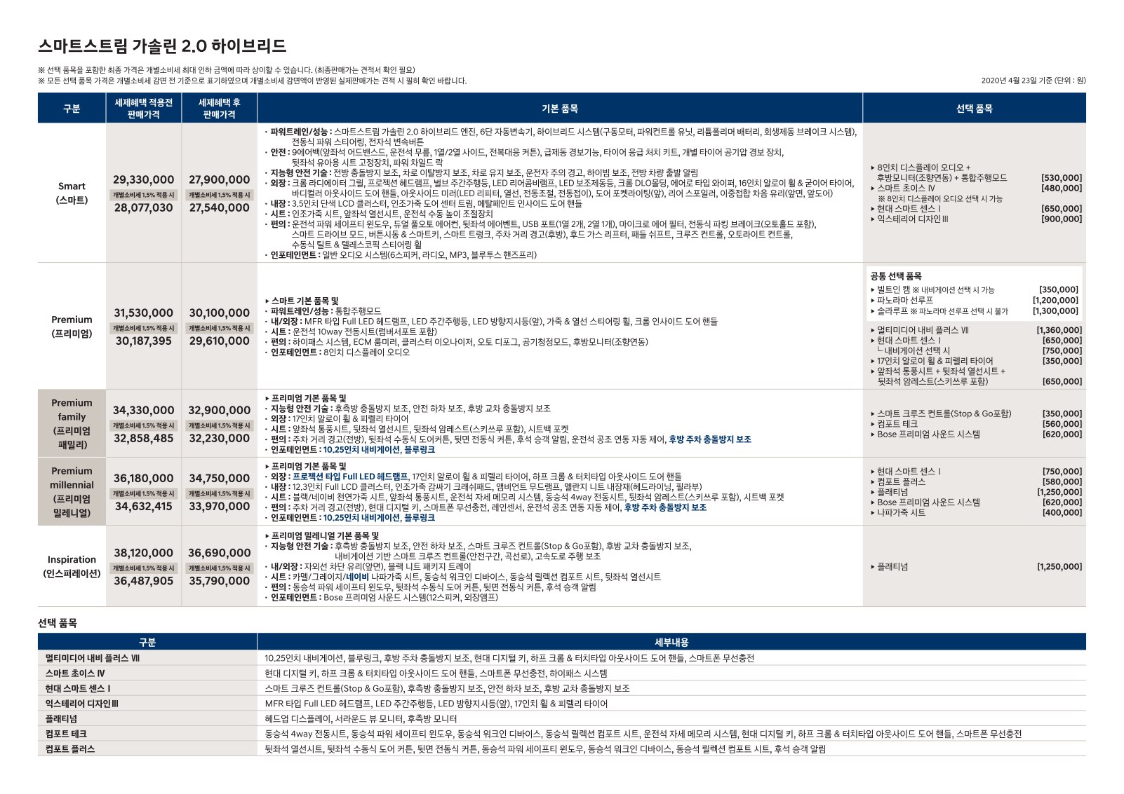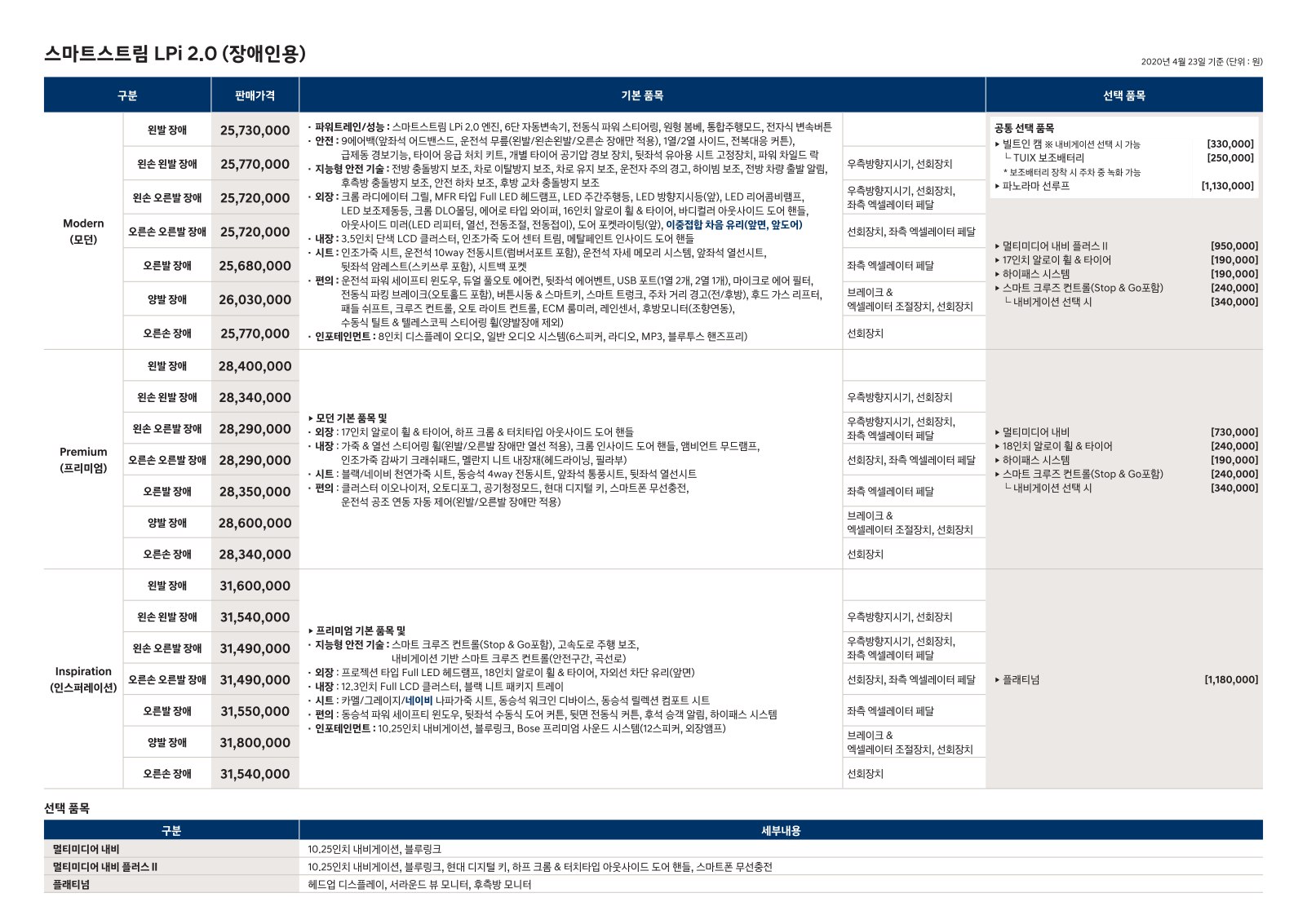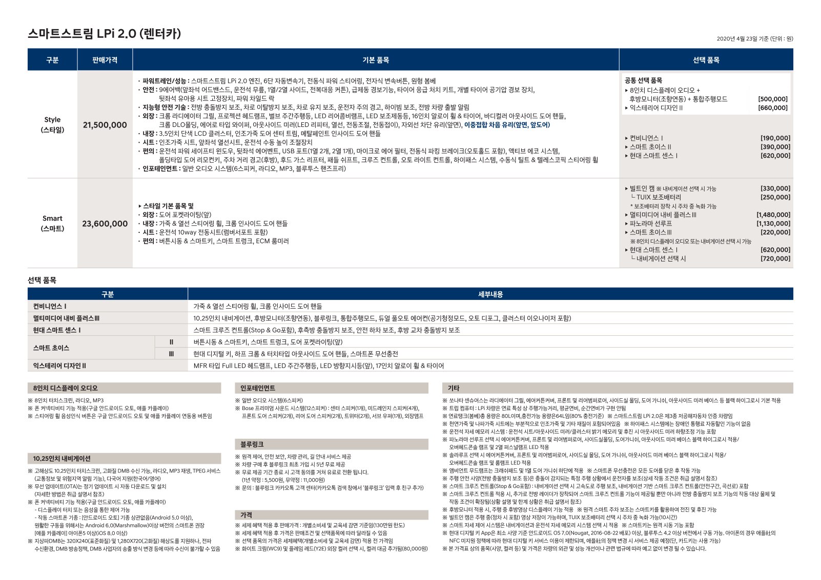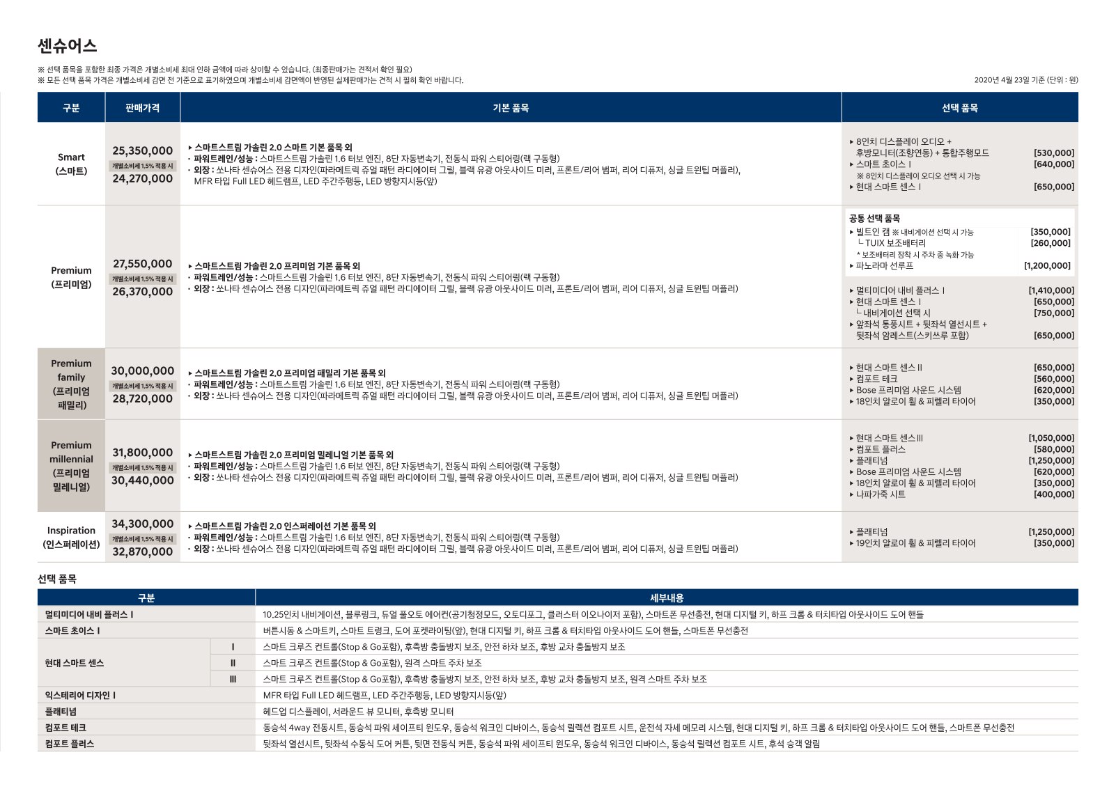 2020년 4월 쏘나타 신차가격표 (2020년형 쏘나타DN8 출시)