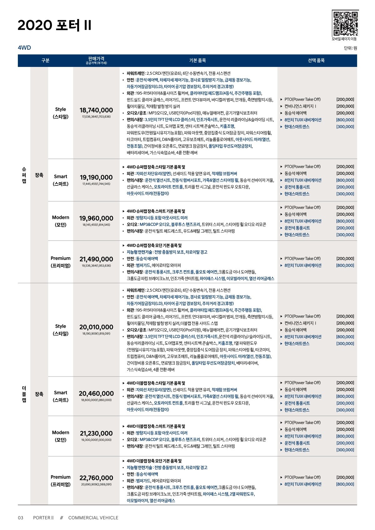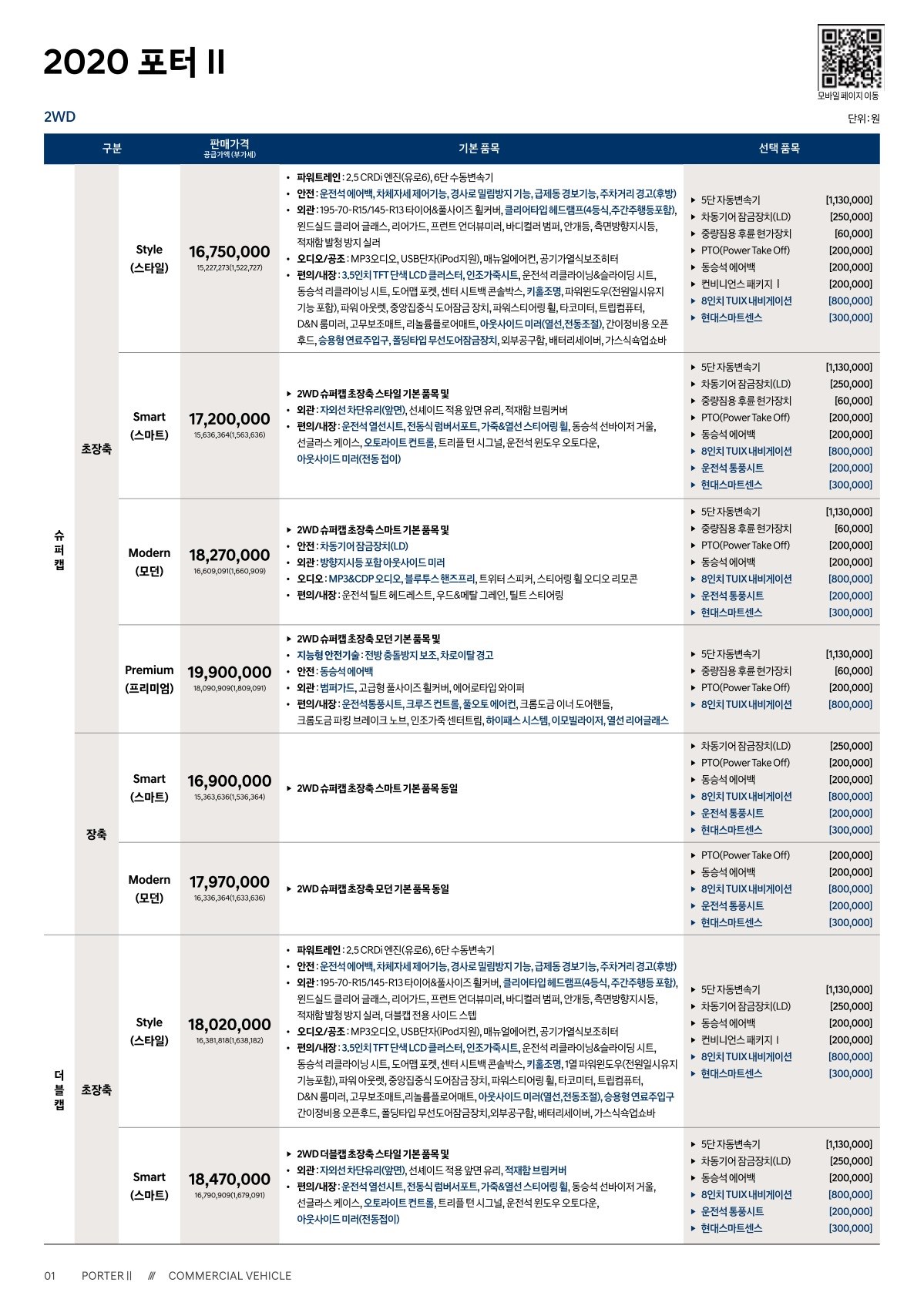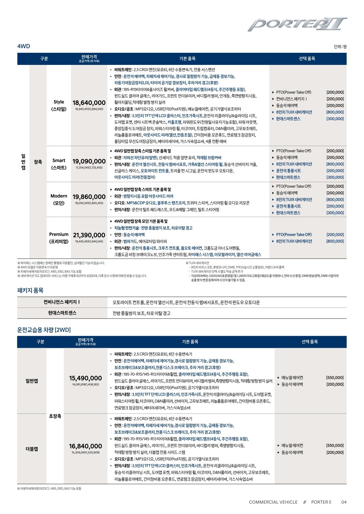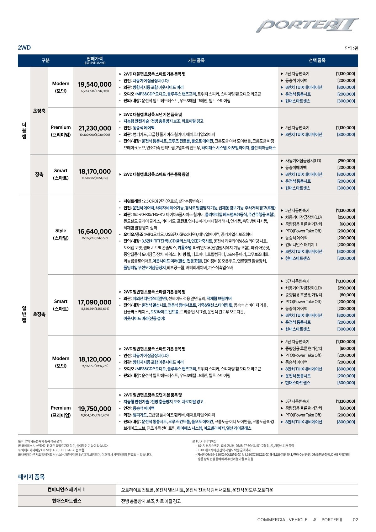 2019년 8월 포터 가격표 (2020년형 포터 출시 가격표)