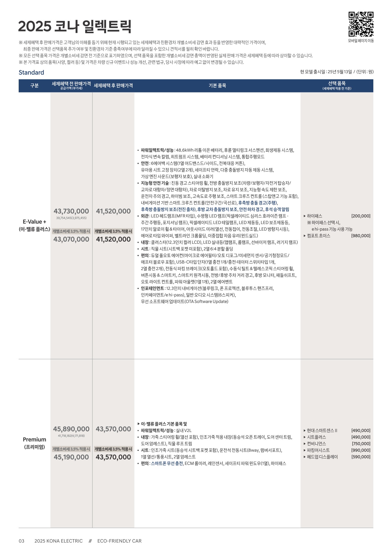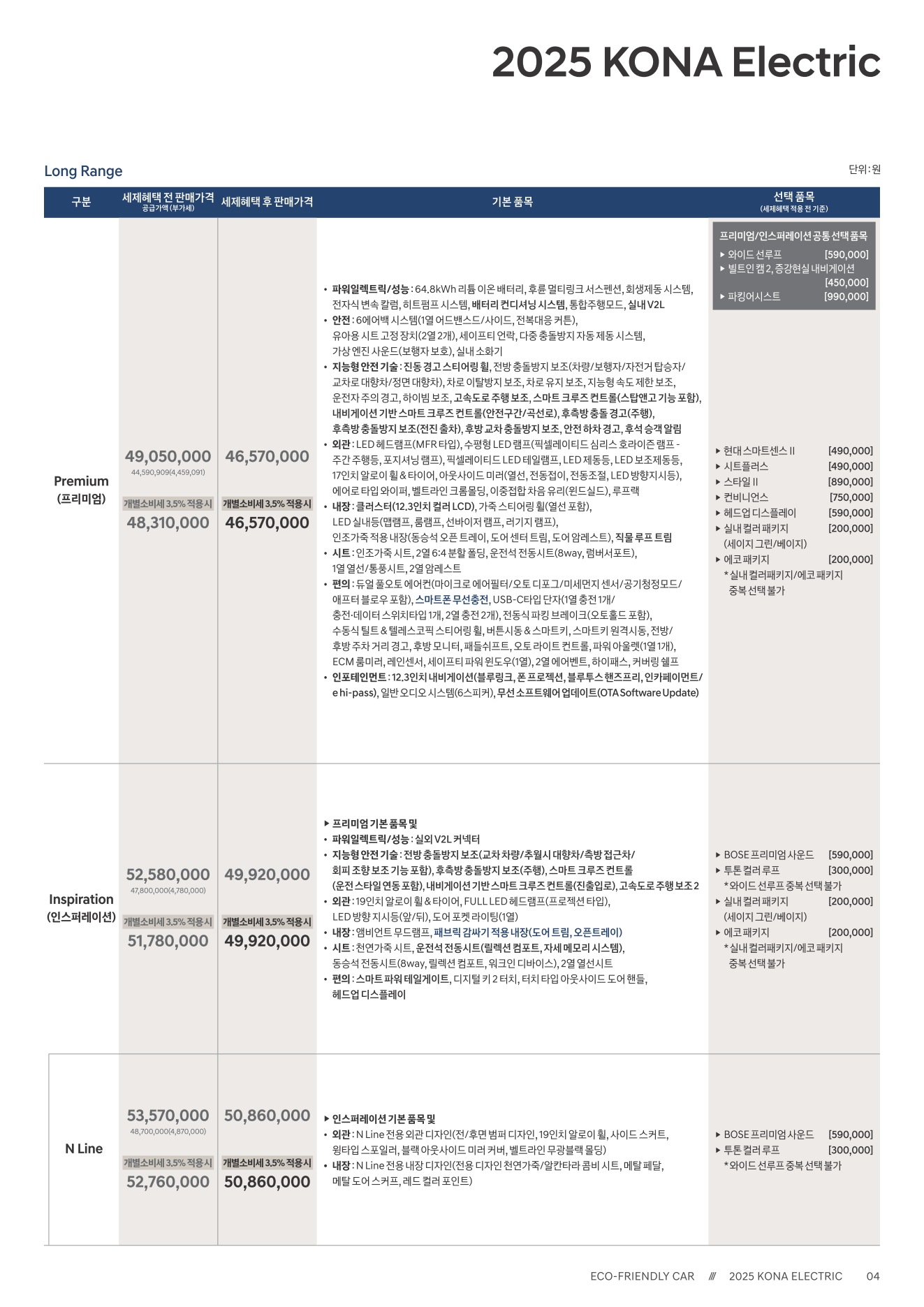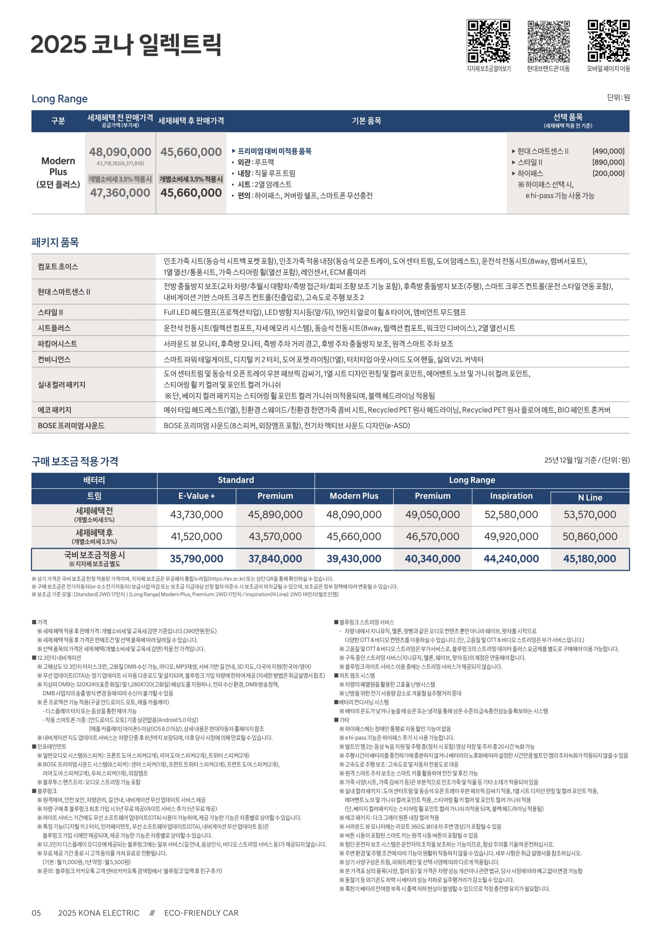 2025년 12월 코나 일렉트릭 신차가격표