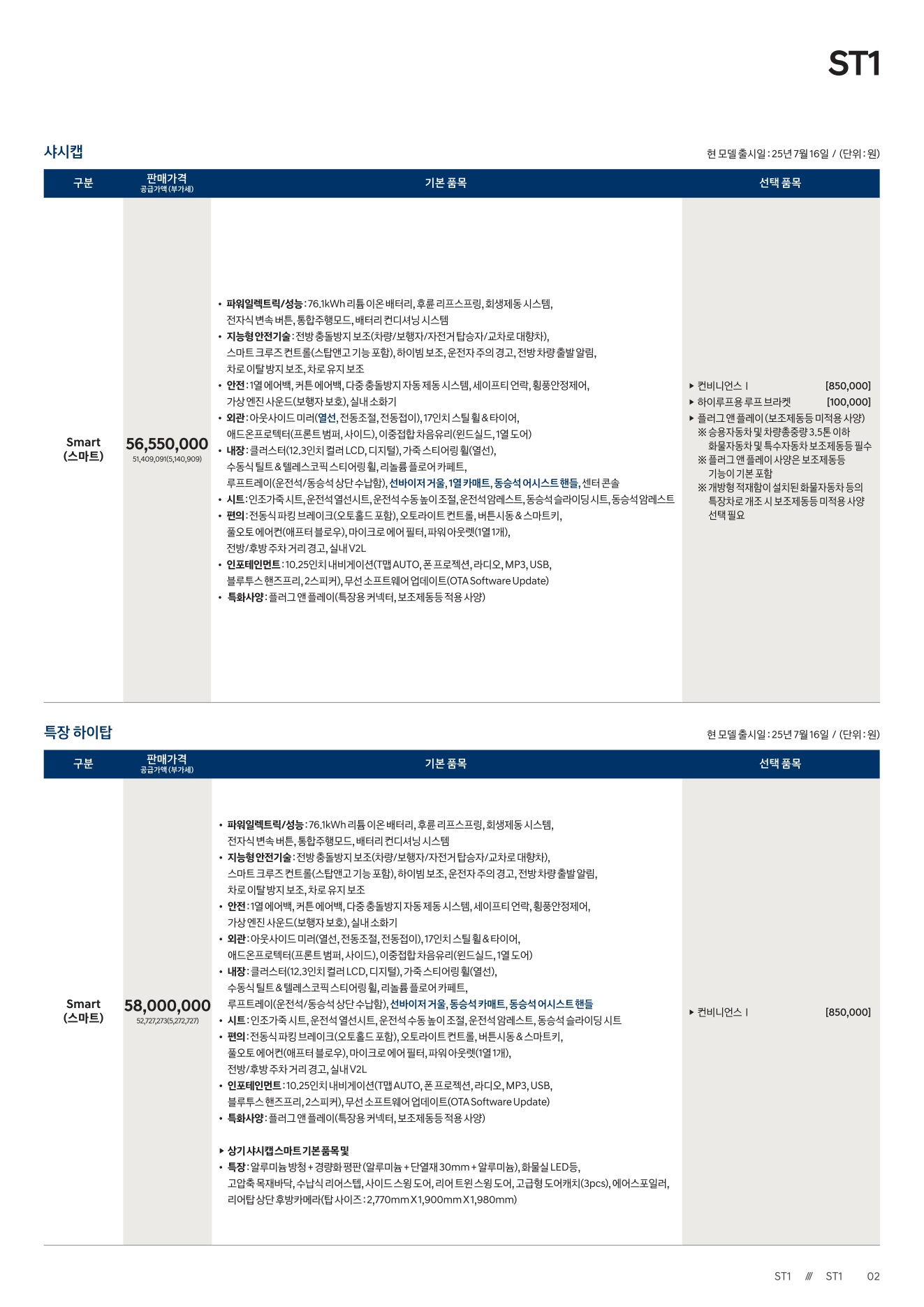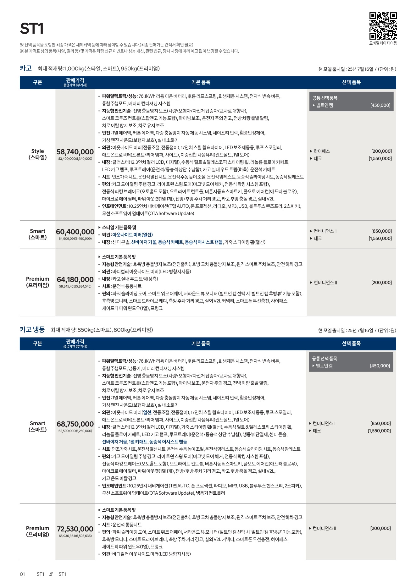 2025년 12월 ST1 신차가격표