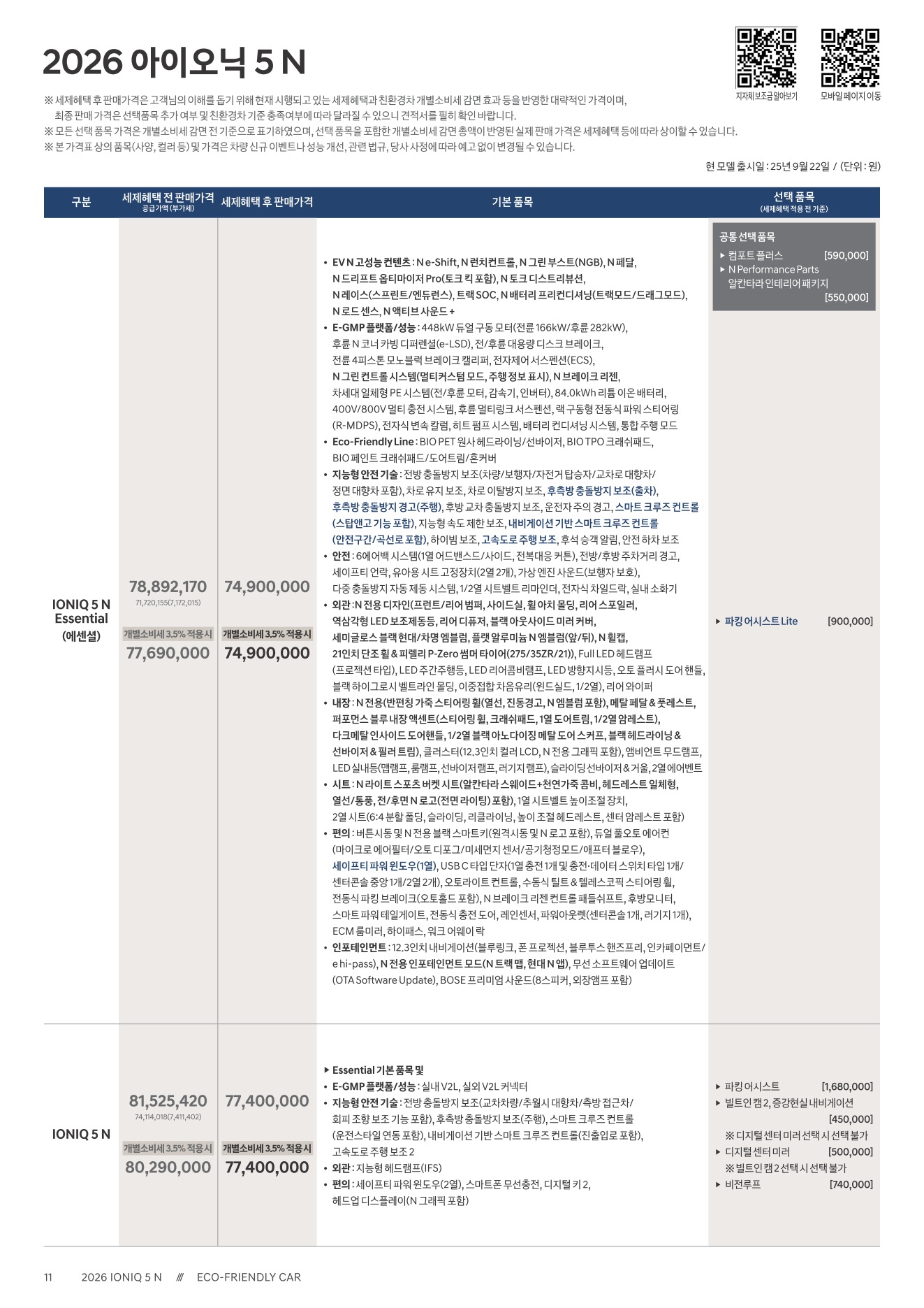 2025년 12월 아이오닉5N 신차가격표