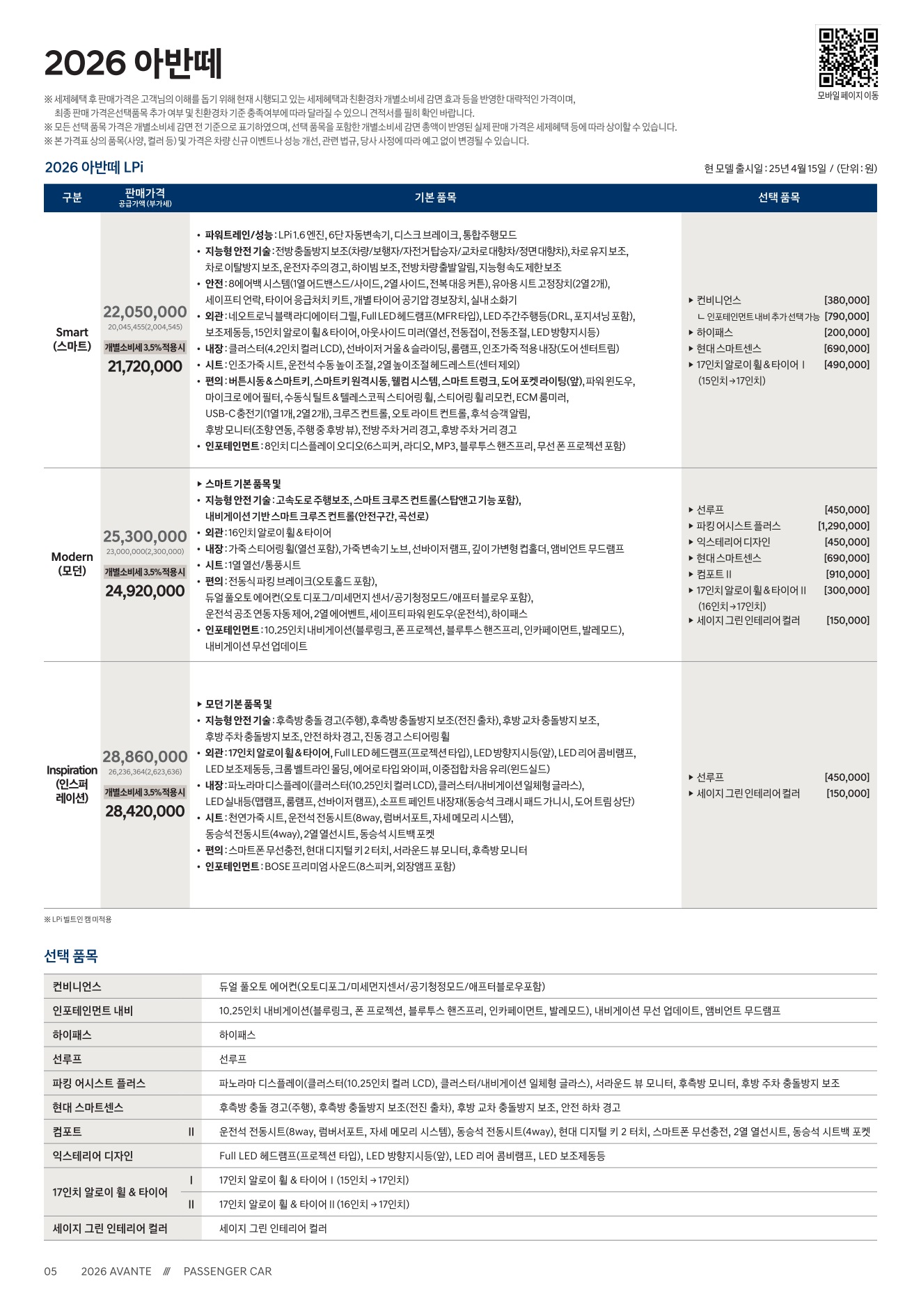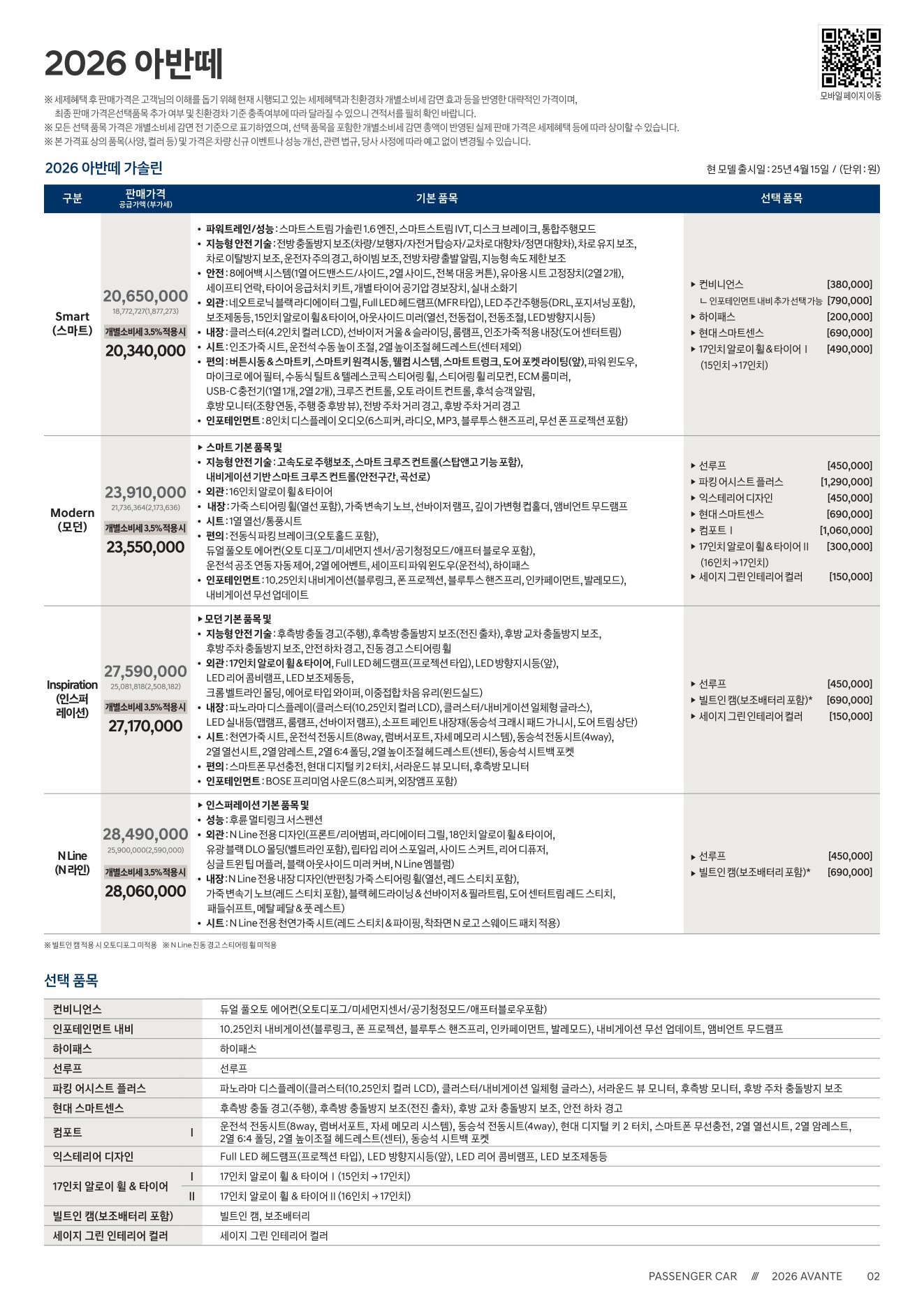 2025년 12월 아반떼 신차가격표