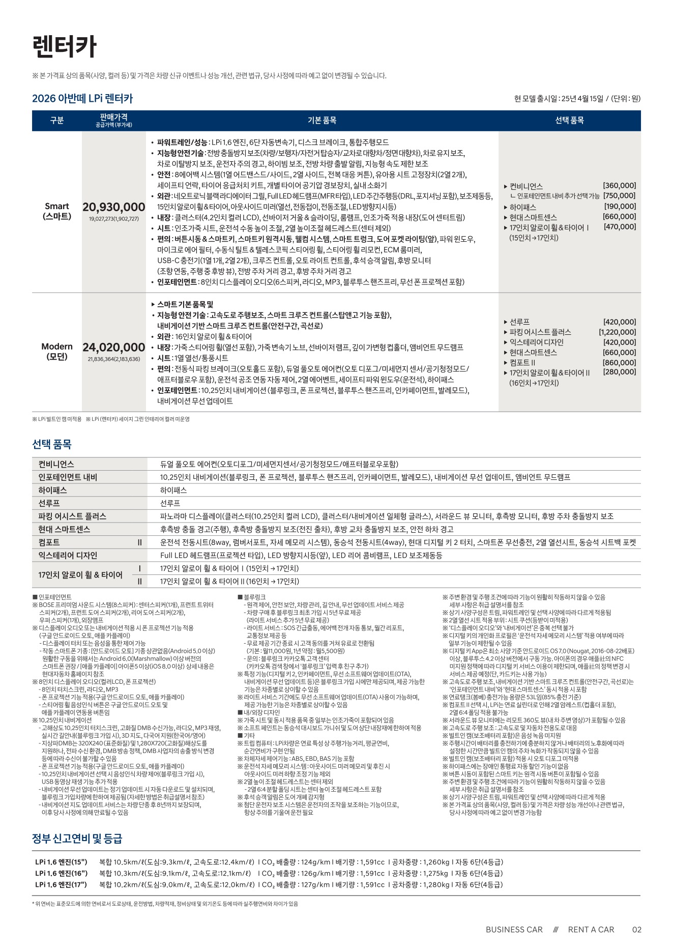 차량 가격표