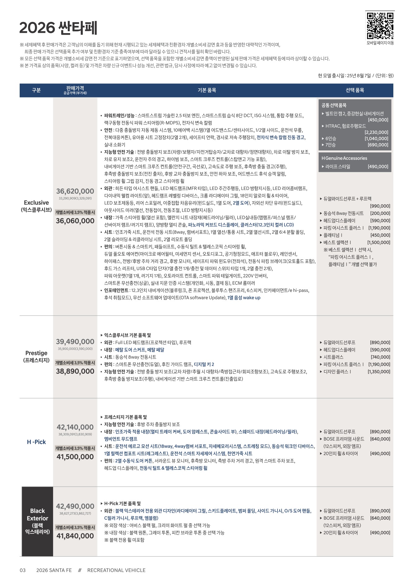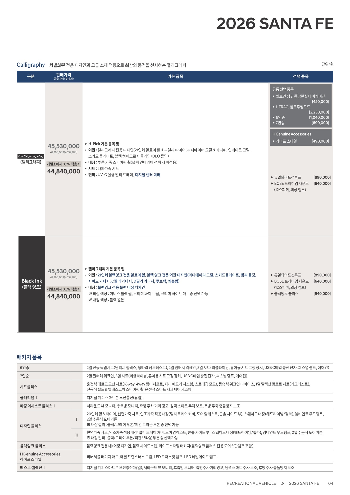 2025년 12월 싼타페 신차가격표