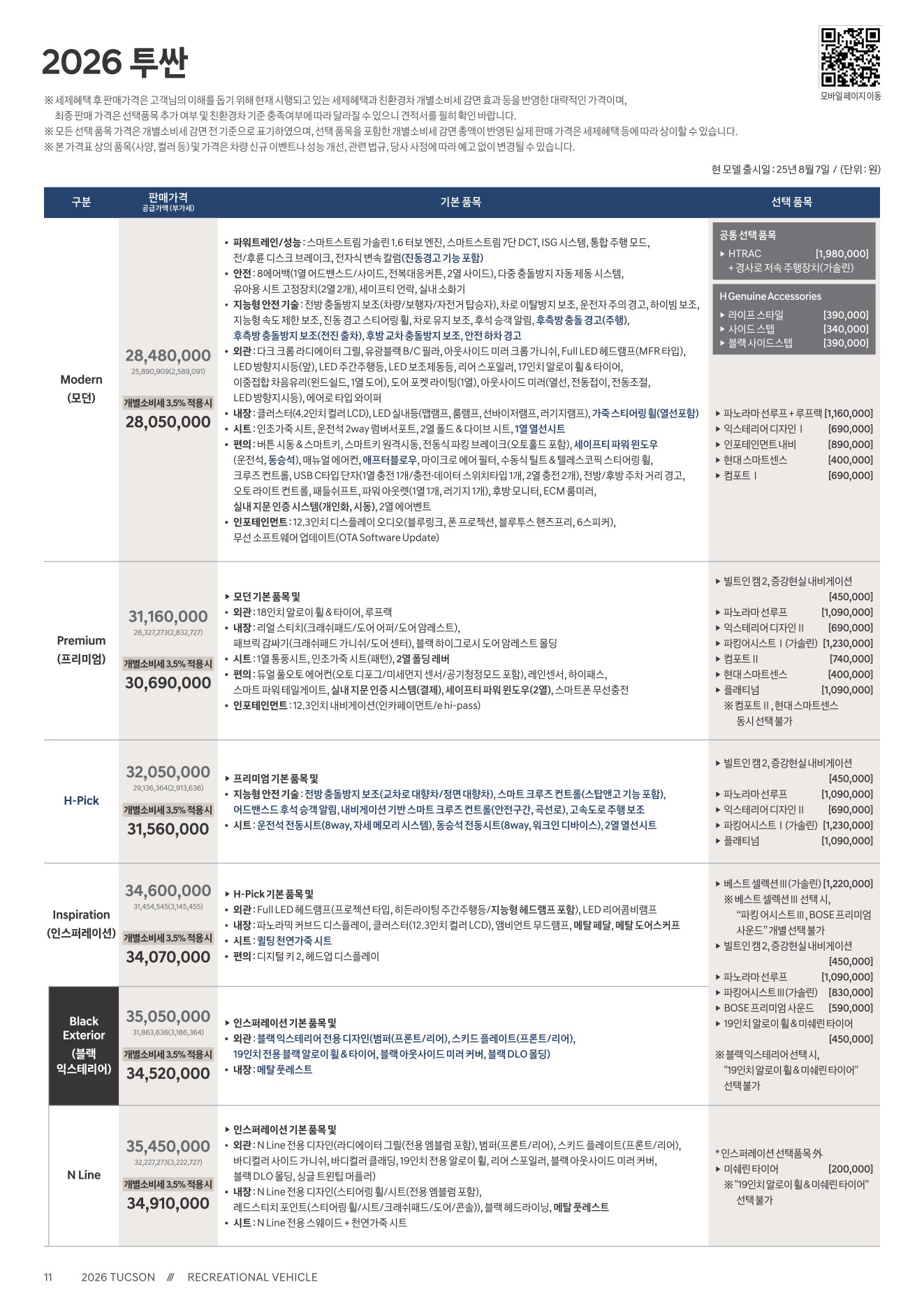2025년 12월 투싼 신차가격표