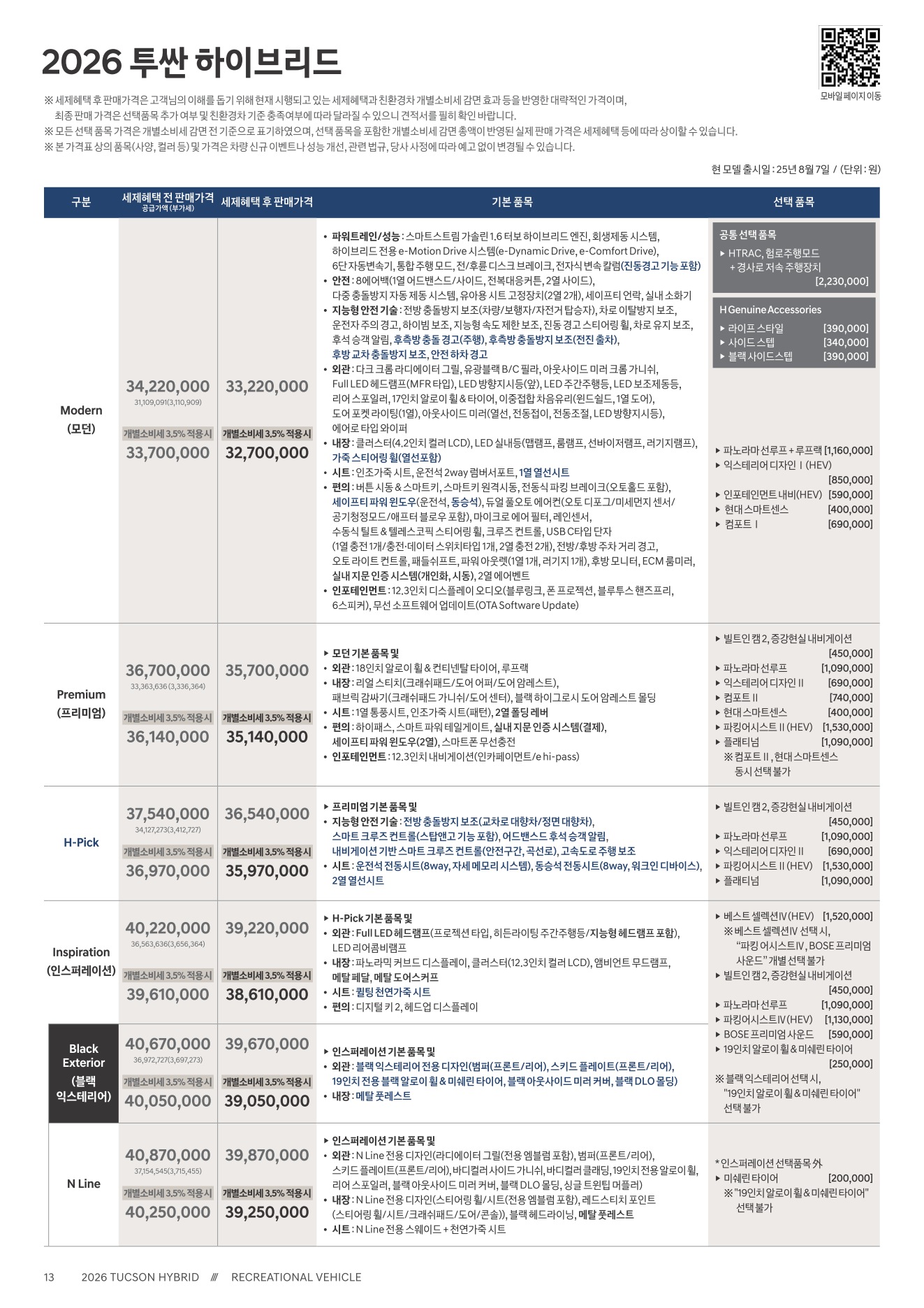* 상기 가격표의 저작권은 해당 제조사에 있습니다.
