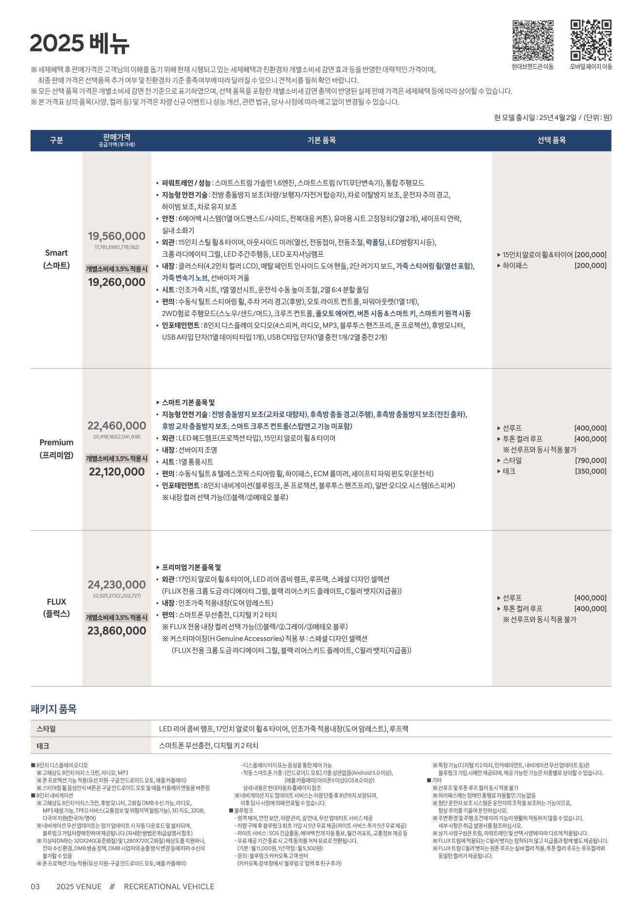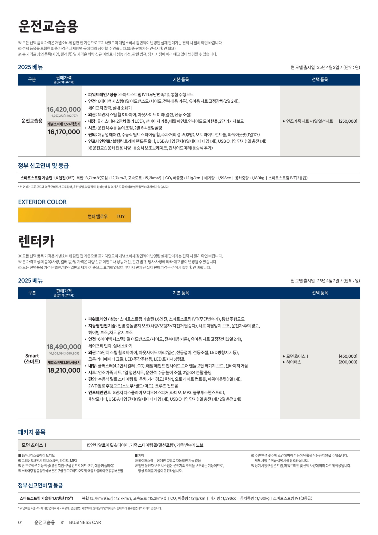 2025년 12월 베뉴 신차가격표