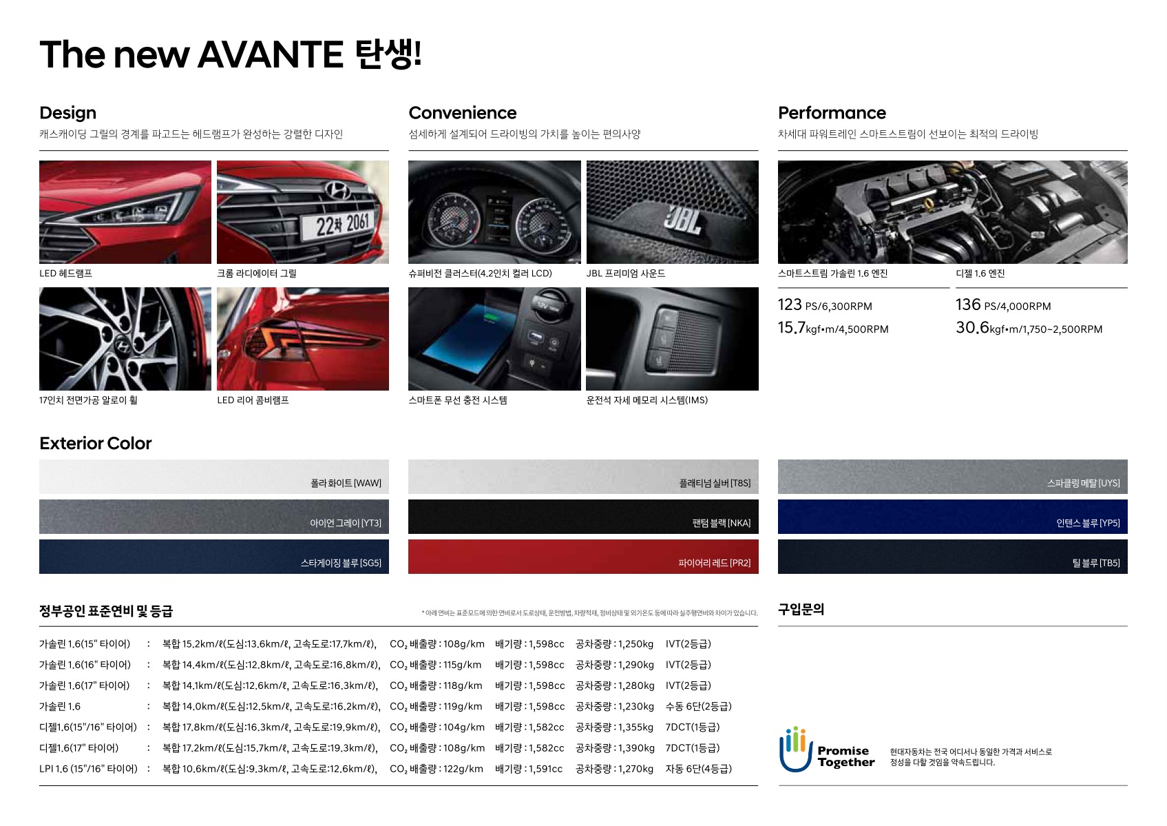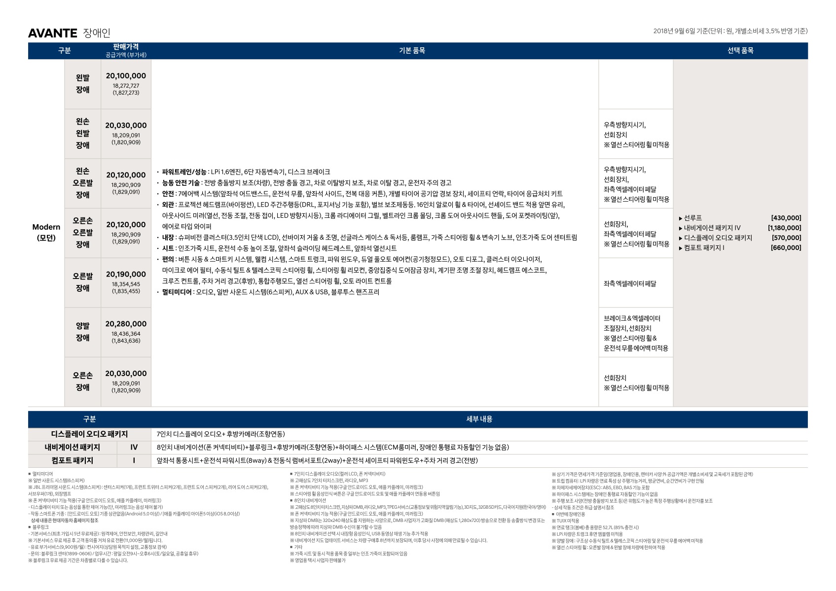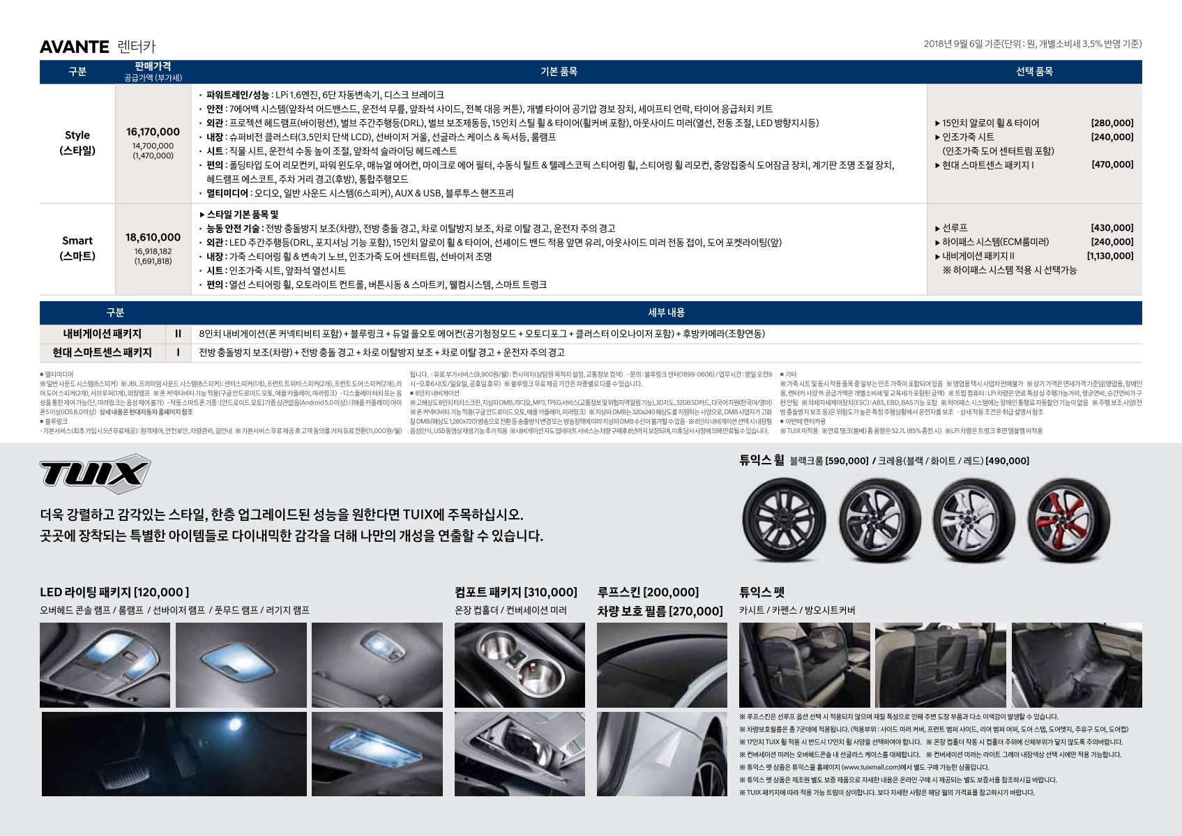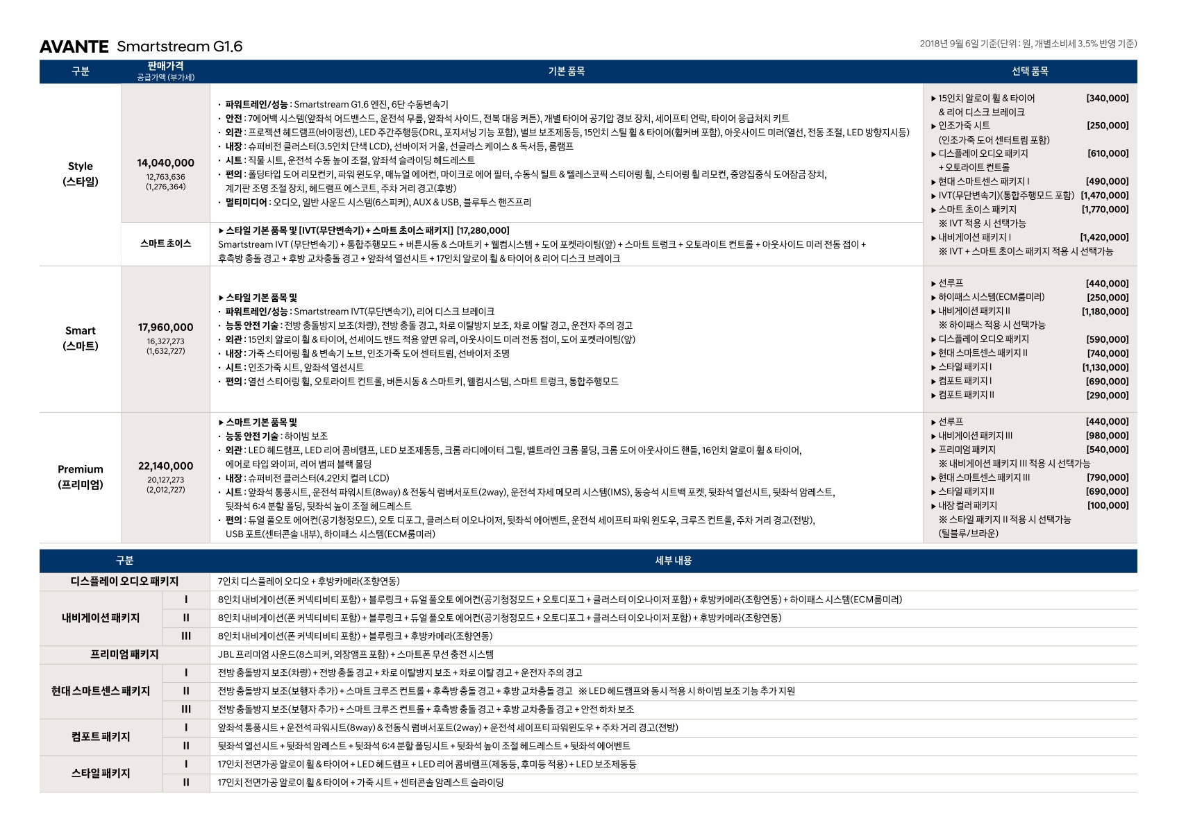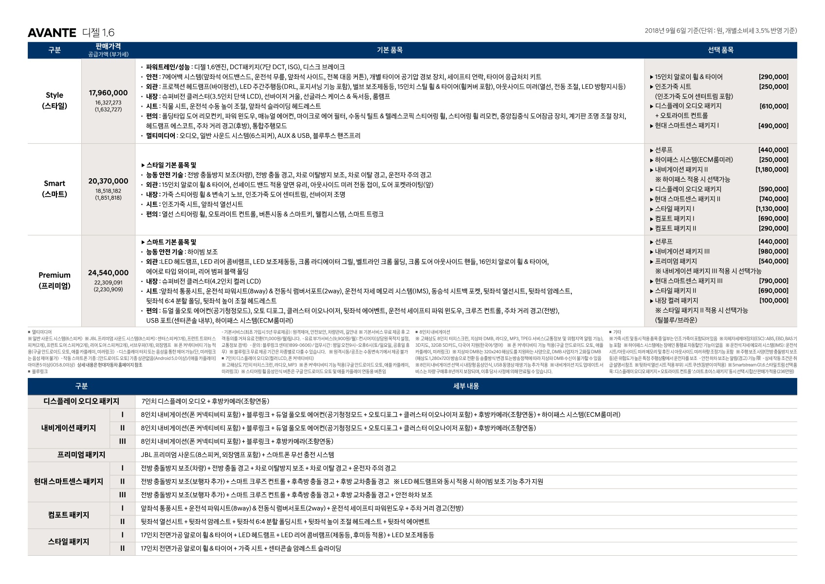2018년 9월 아반떼 신차가격표 (더뉴아반떼)