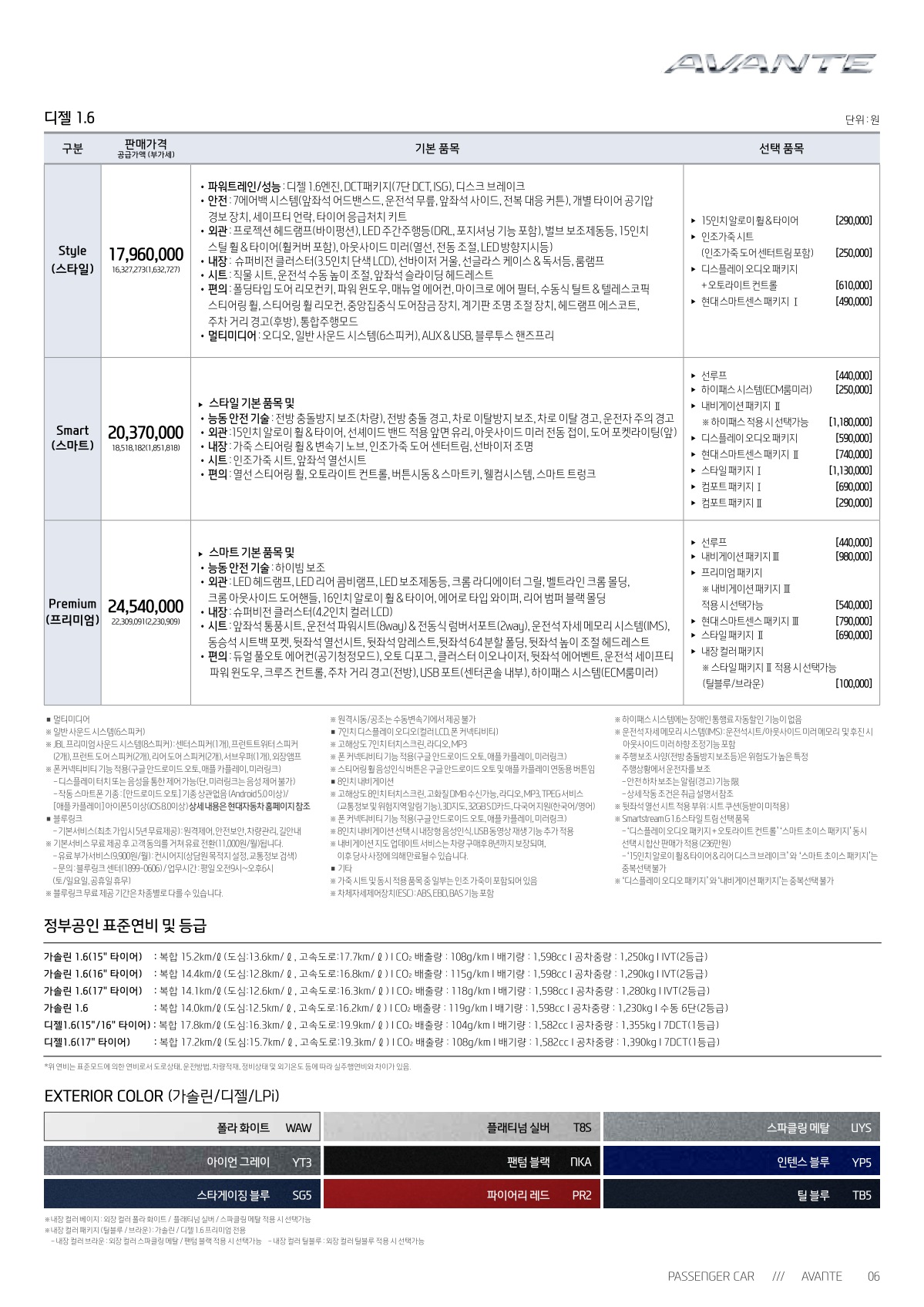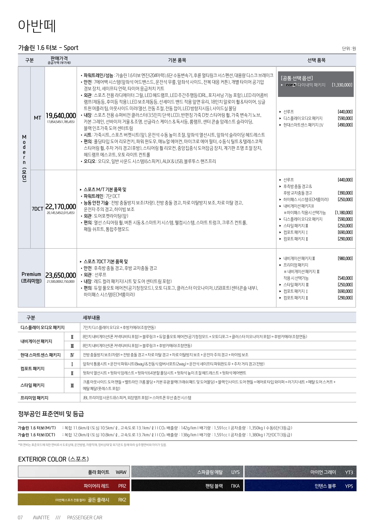 2018년 11월 아반떼 신차가격표 (아반떼 스포츠 출시)