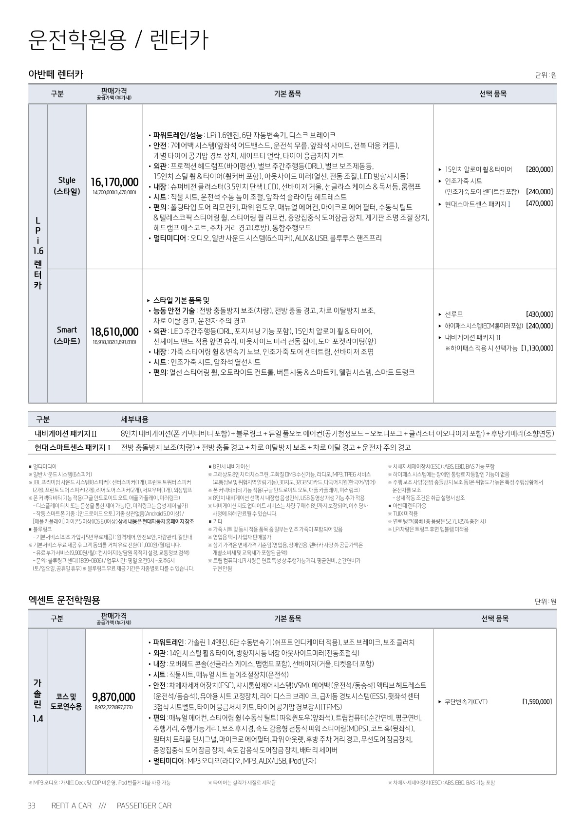 ※ 본 가격표의 모든 저작권은 해당 차량 제조사에 있습니다.