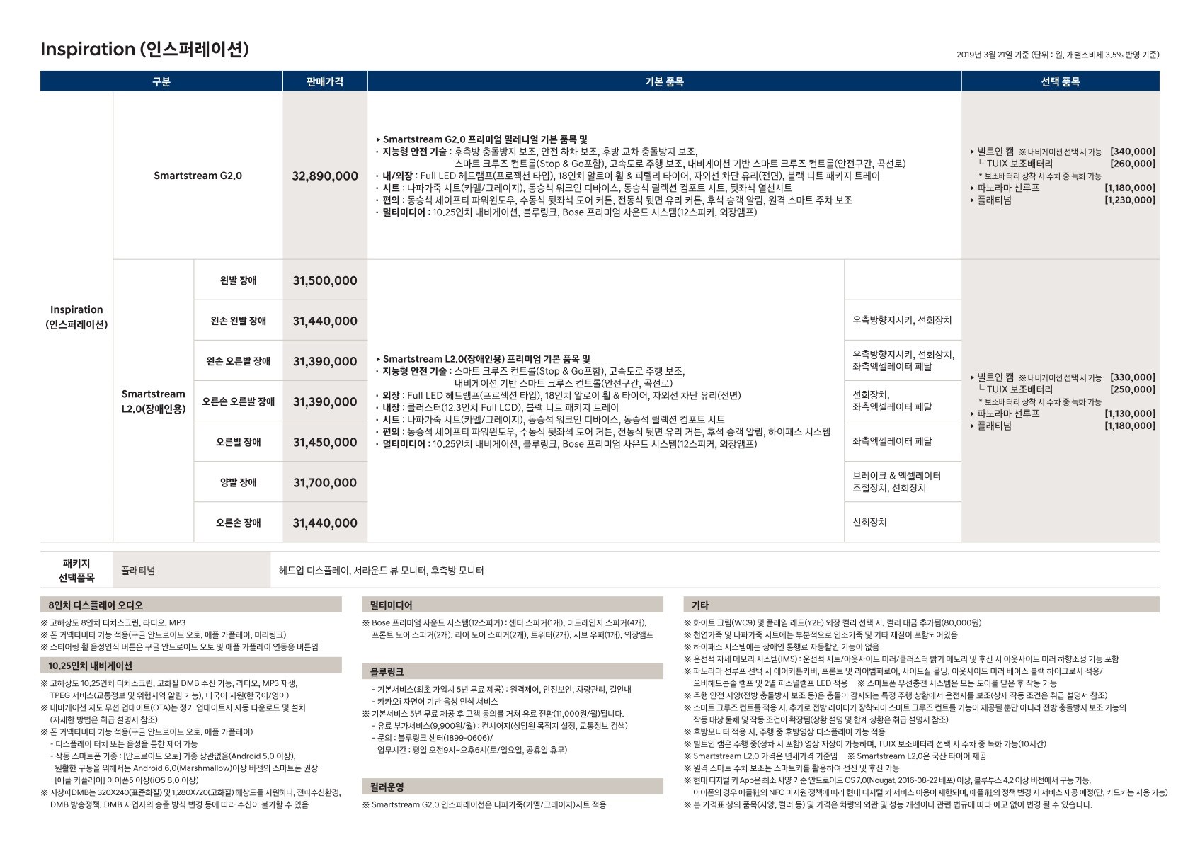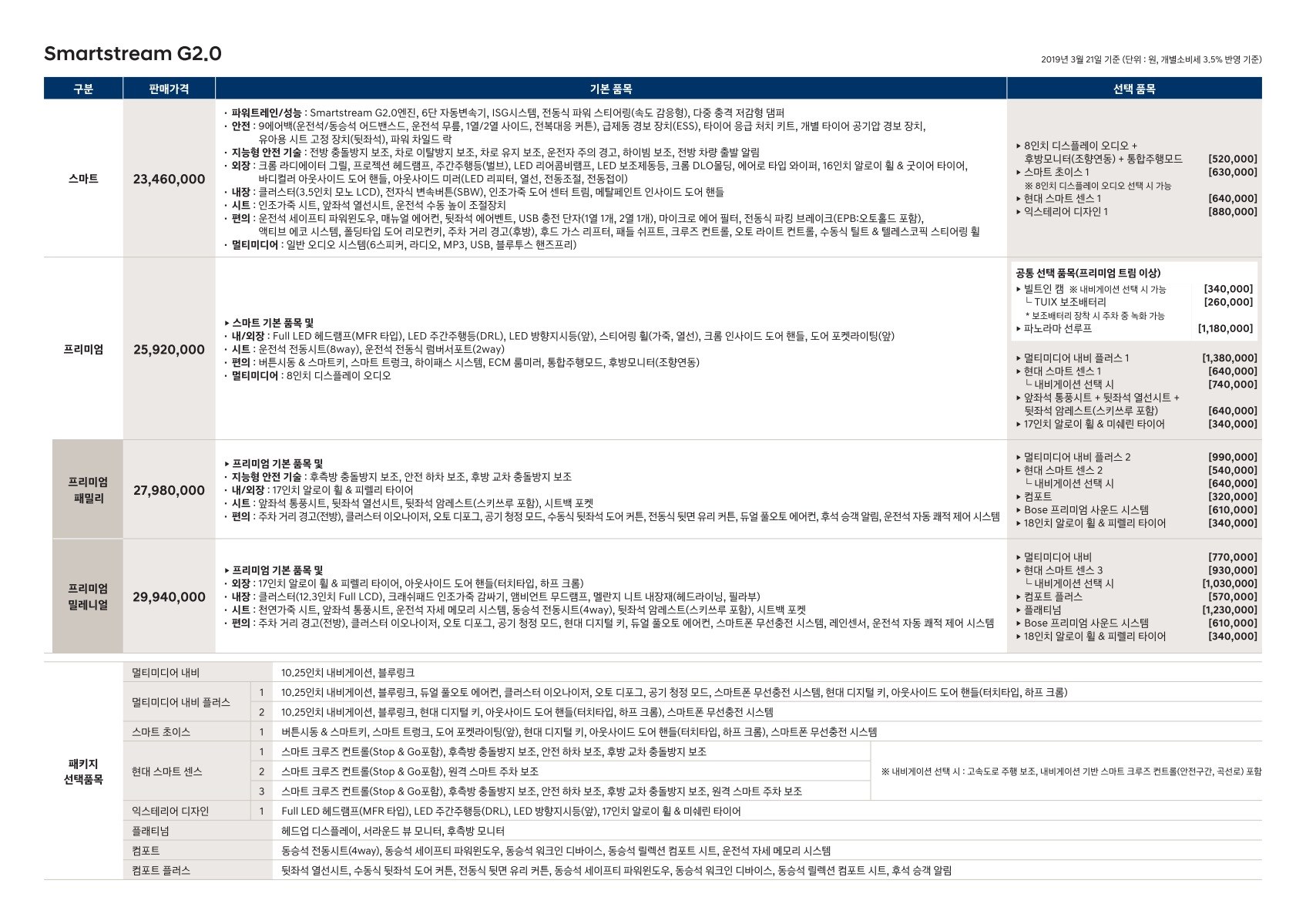 2019년 2월 쏘나타 신차가격표 (DN8 쏘나타 / 8세대 쏘나타)