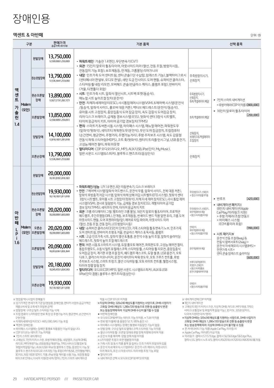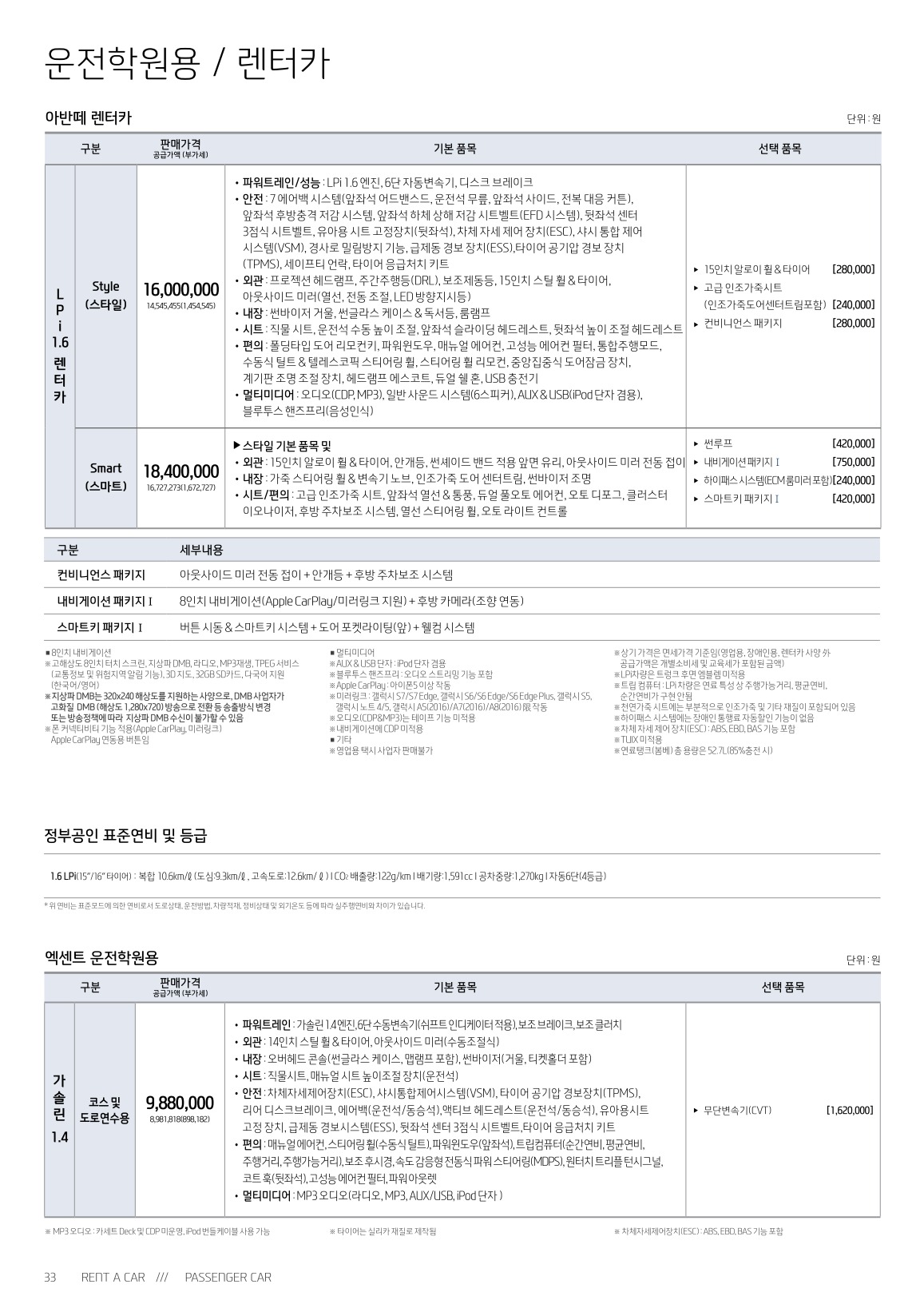 ※ 본 가격표의 모든 저작권은 해당 차량 제조사에 있습니다.