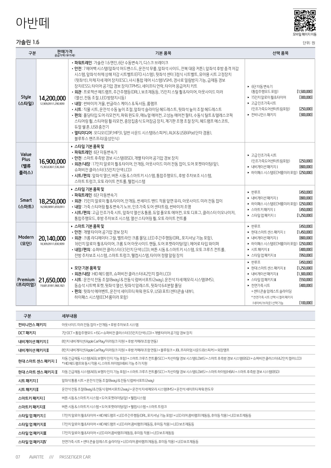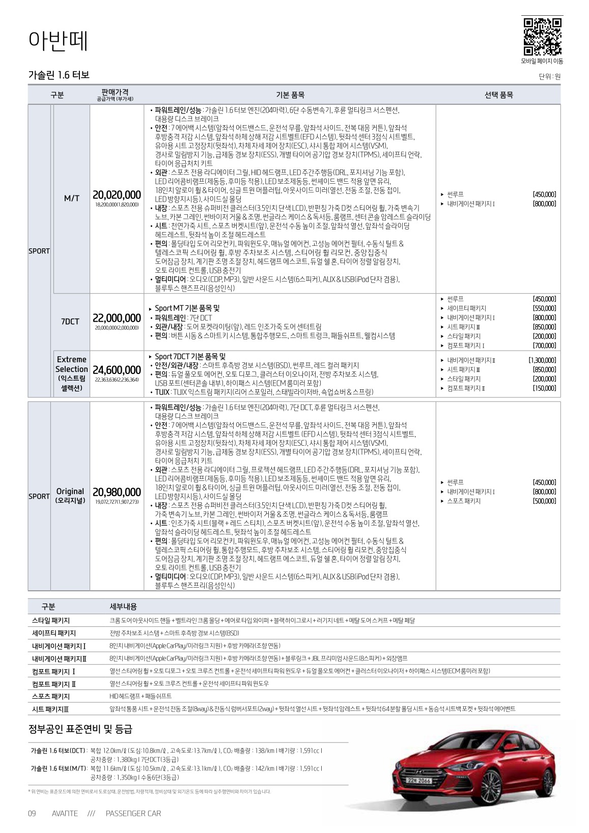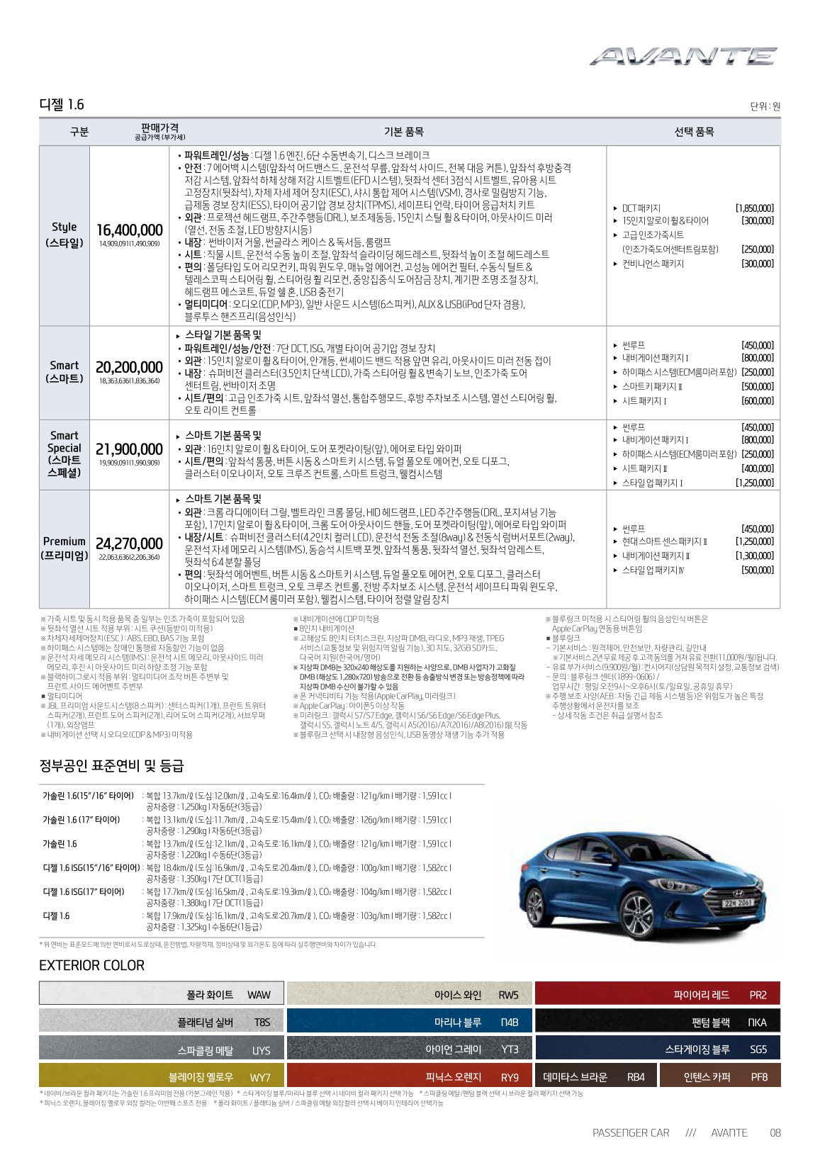 2018년 1월 아반떼 신차가격표