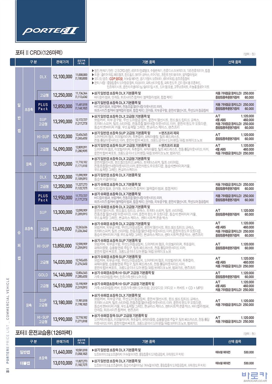 2010년 2월 포터2 신차가격표