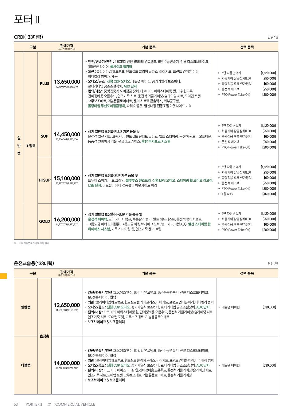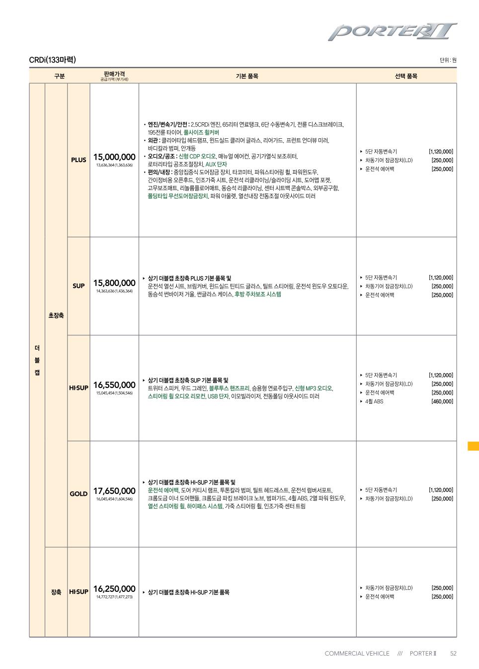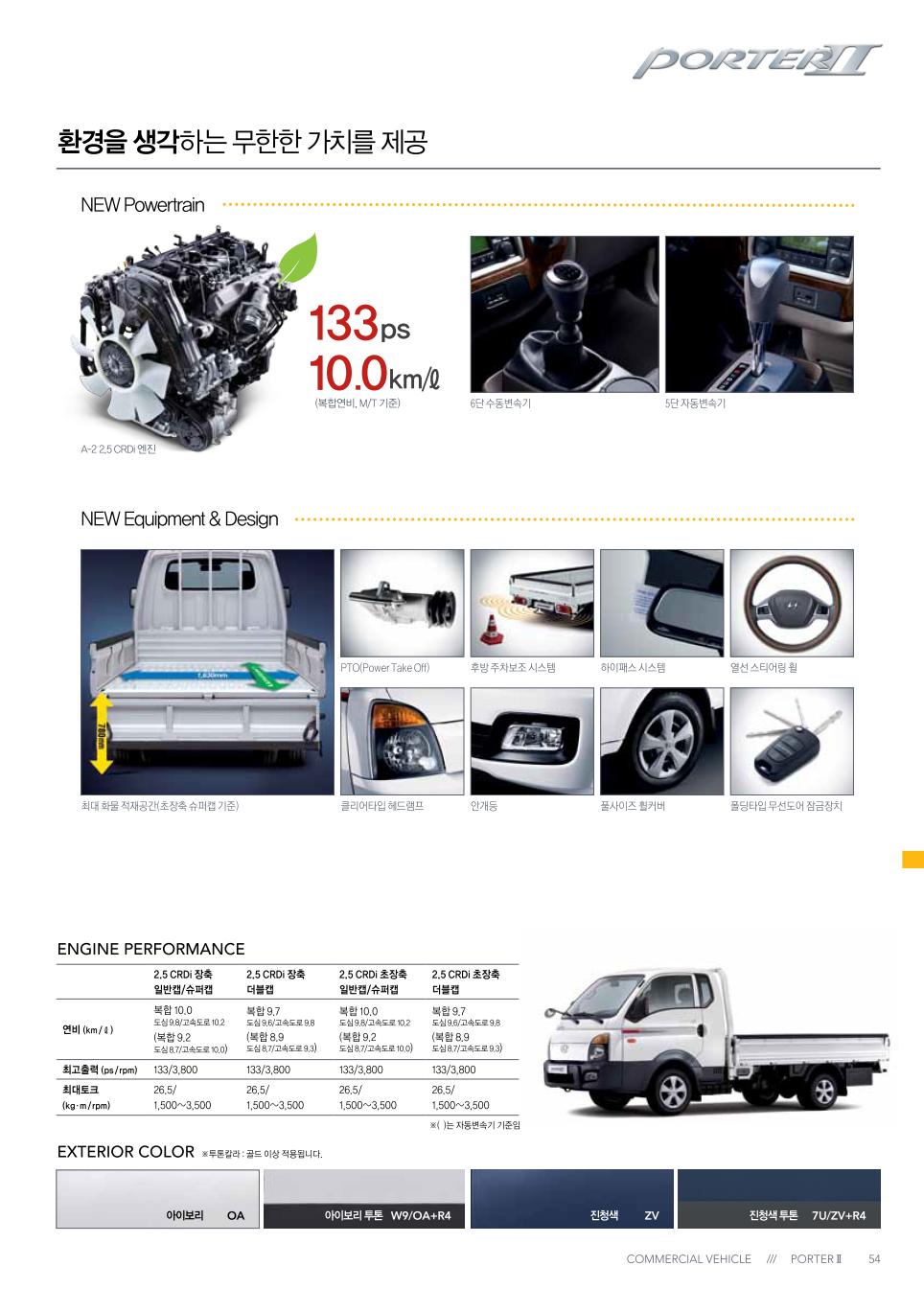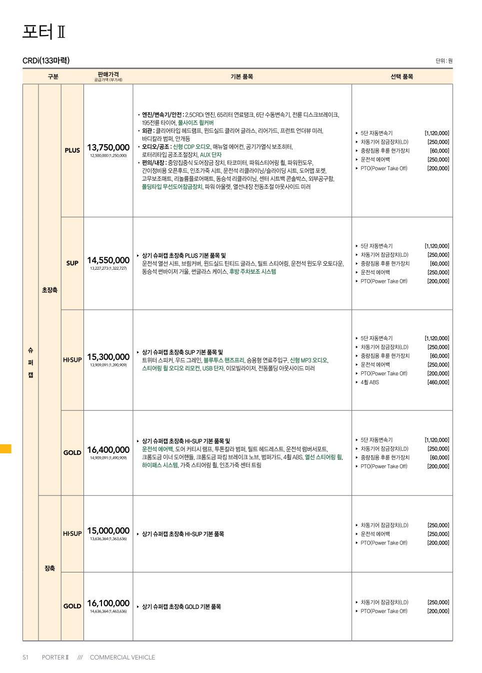 2012년 1월 포터 신차가격표 (유로V A-2 엔진 탑재)