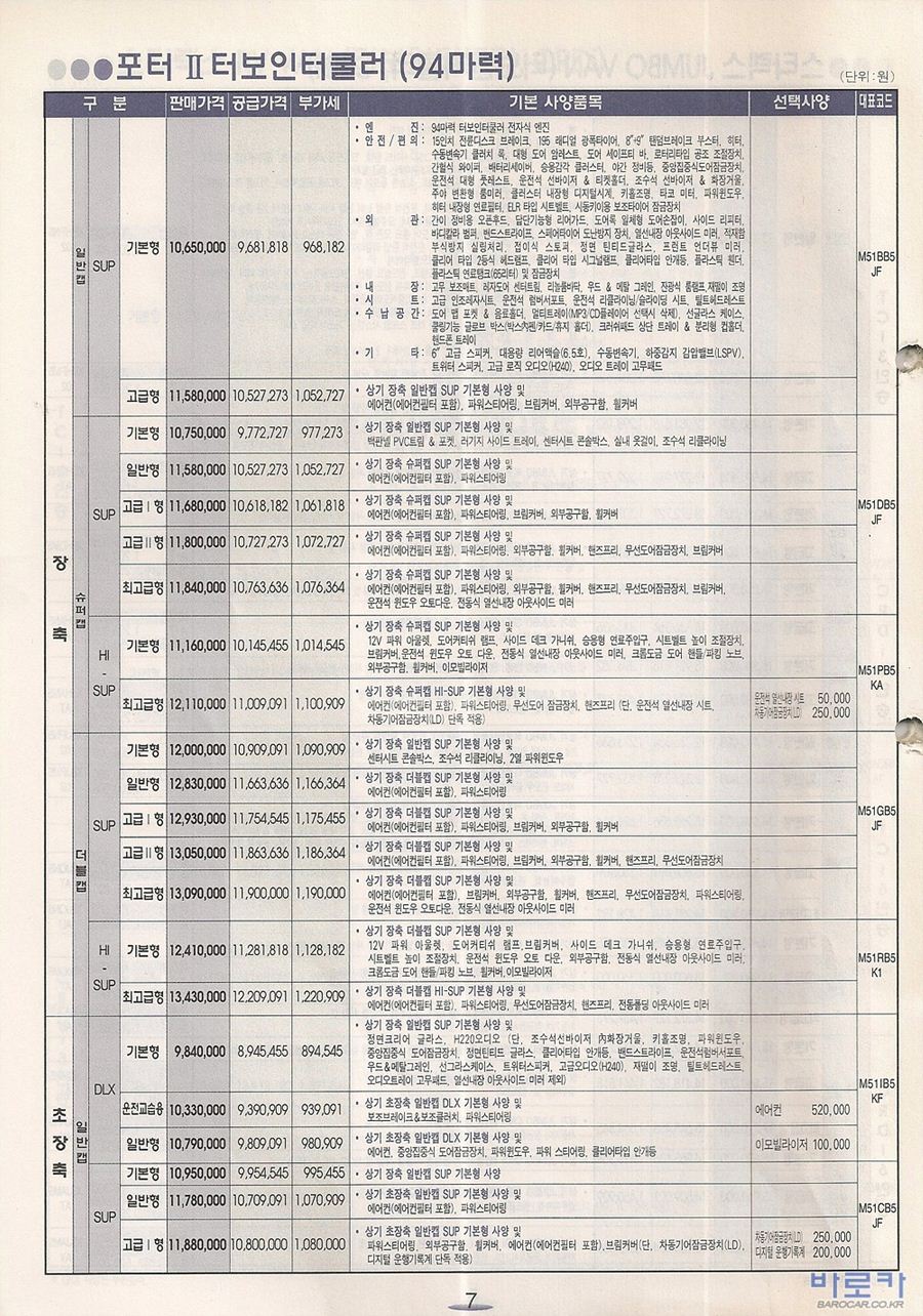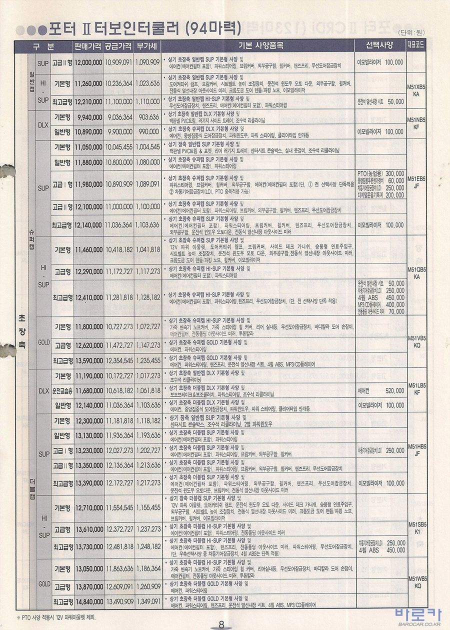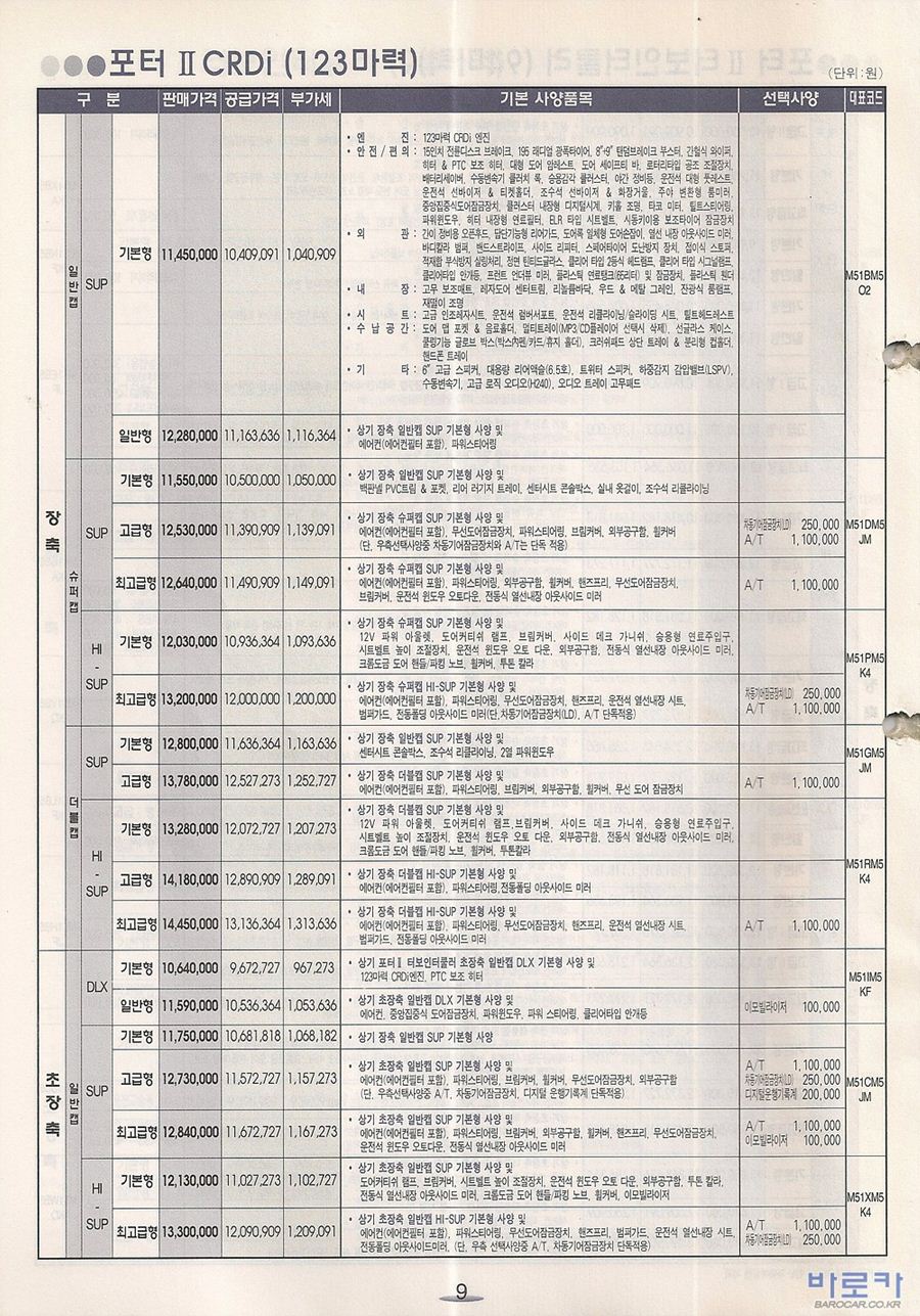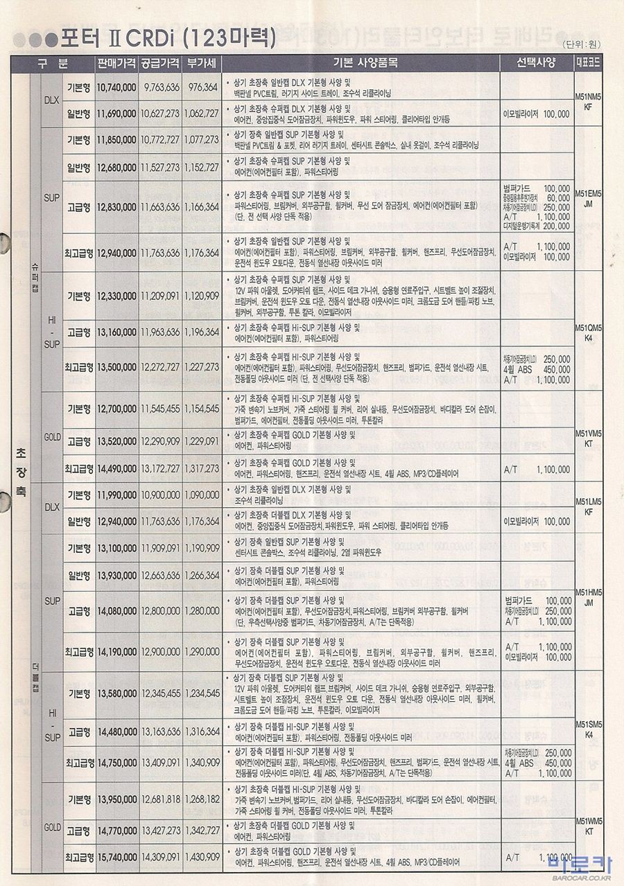 2005년 5월 포터2 (CRDi/터보인터쿨러) 신차가격표