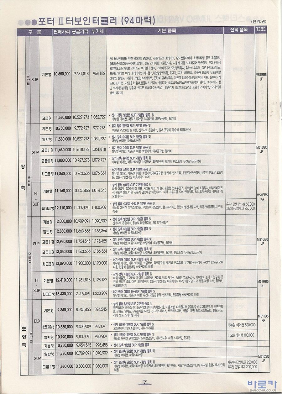 2007년 10월 포터2 신차가격표 (CRDi/터보인터쿨러)