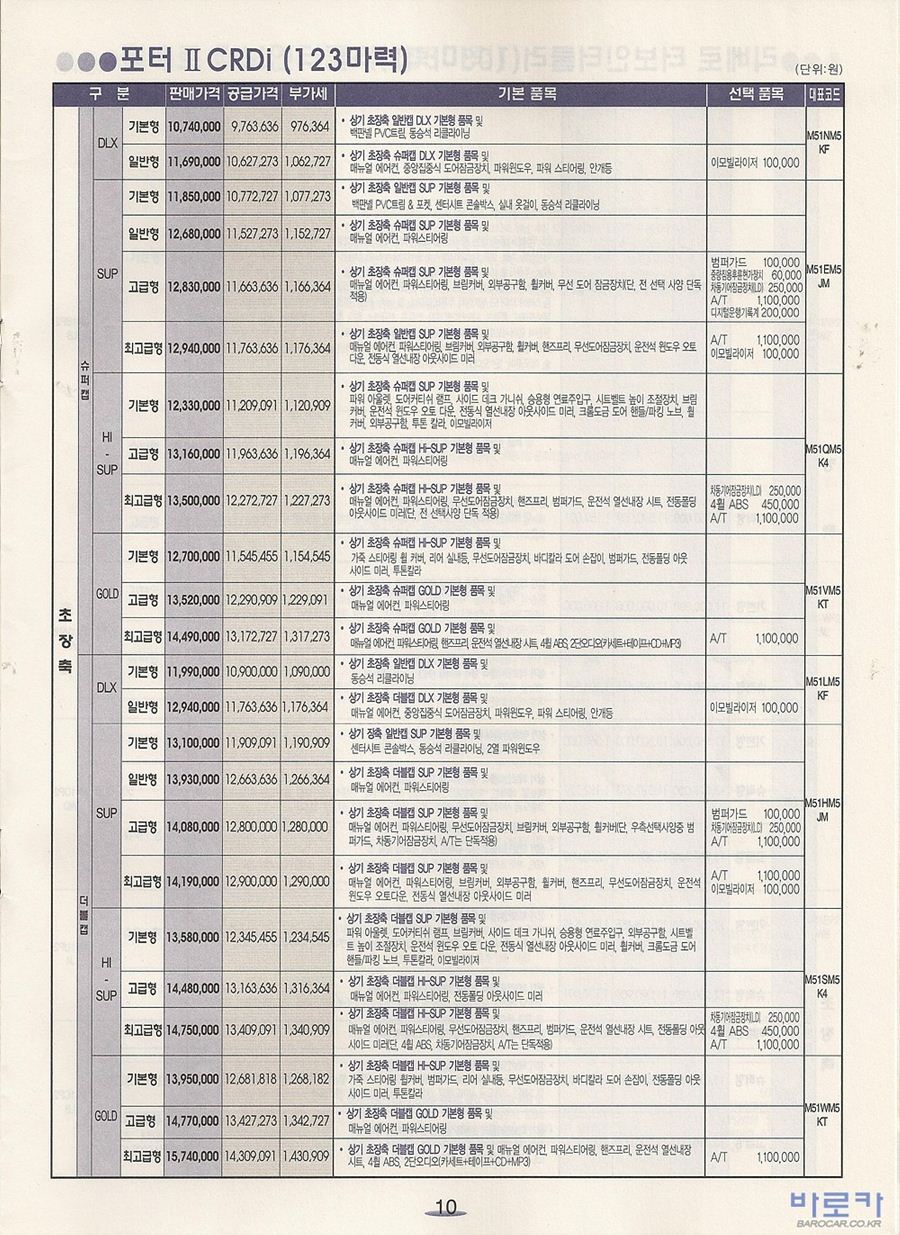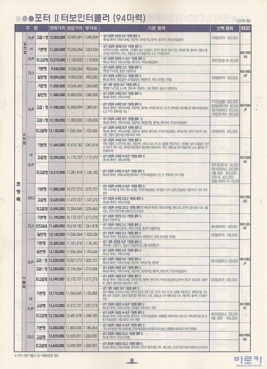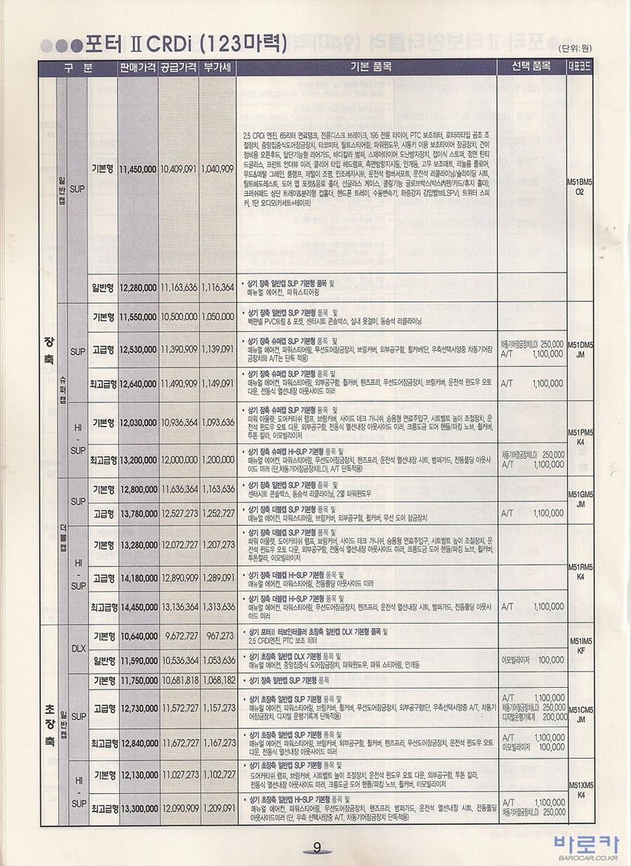 2006년 1월 포터2 신차가격표 (CRDi/터보인터쿨러)