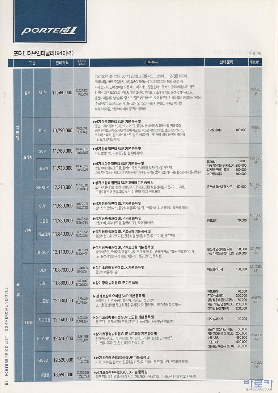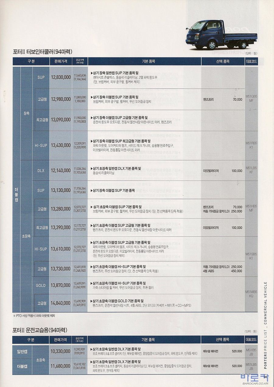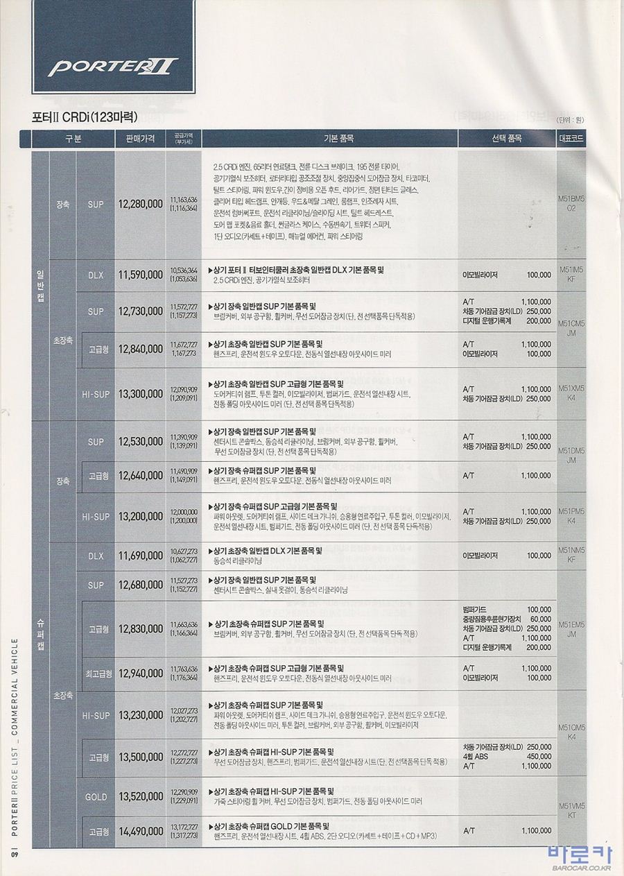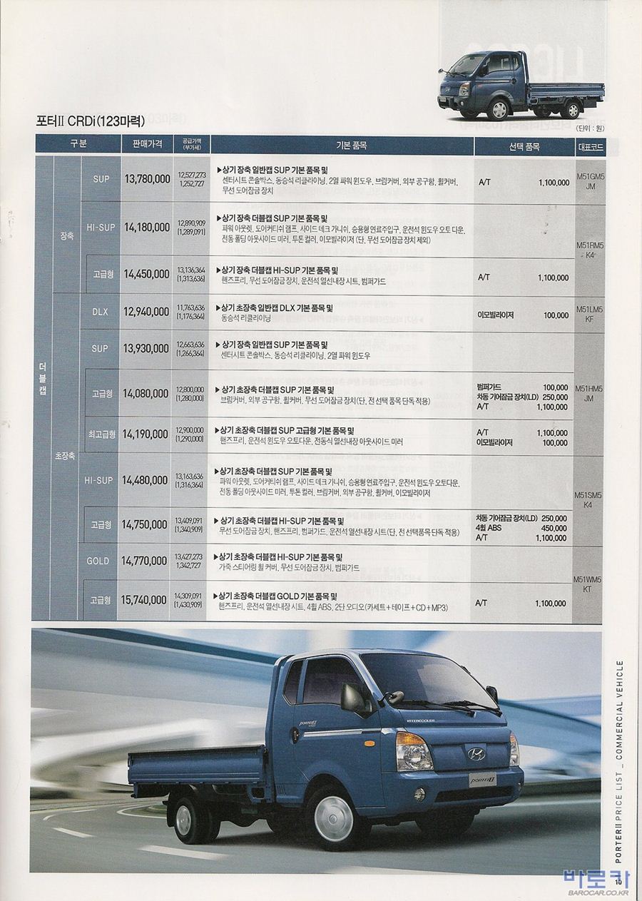2006년 12월 포터2 신차가격표 (CRDi/터보인터쿨러)