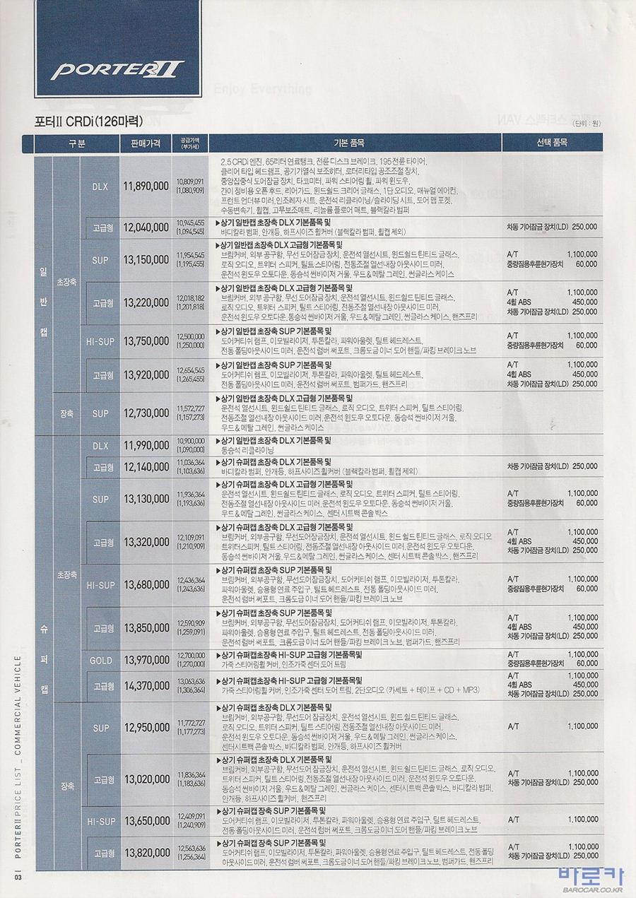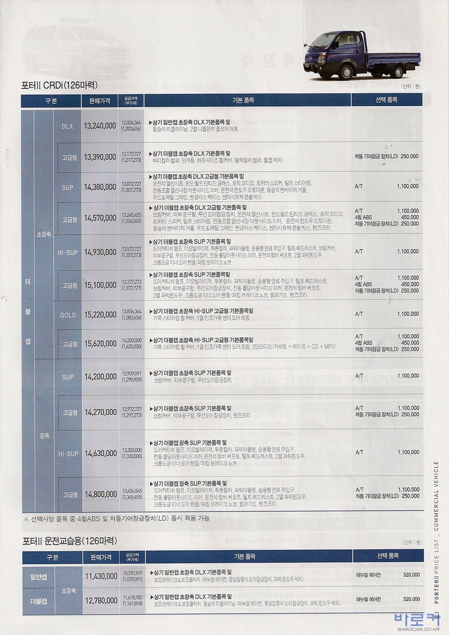 2007년 10월 포터2 신차가격표 (CRDi/터보인터쿨러)