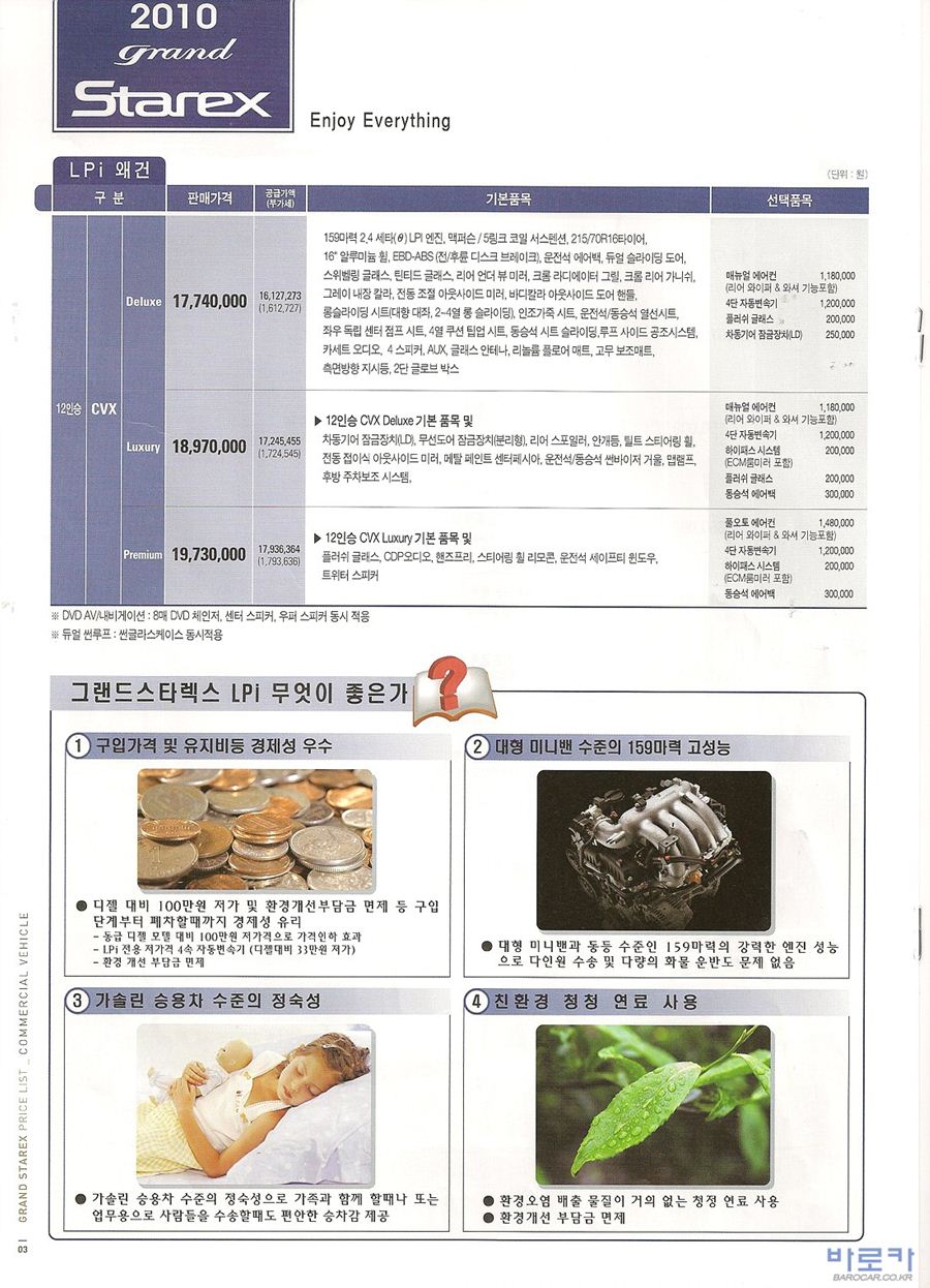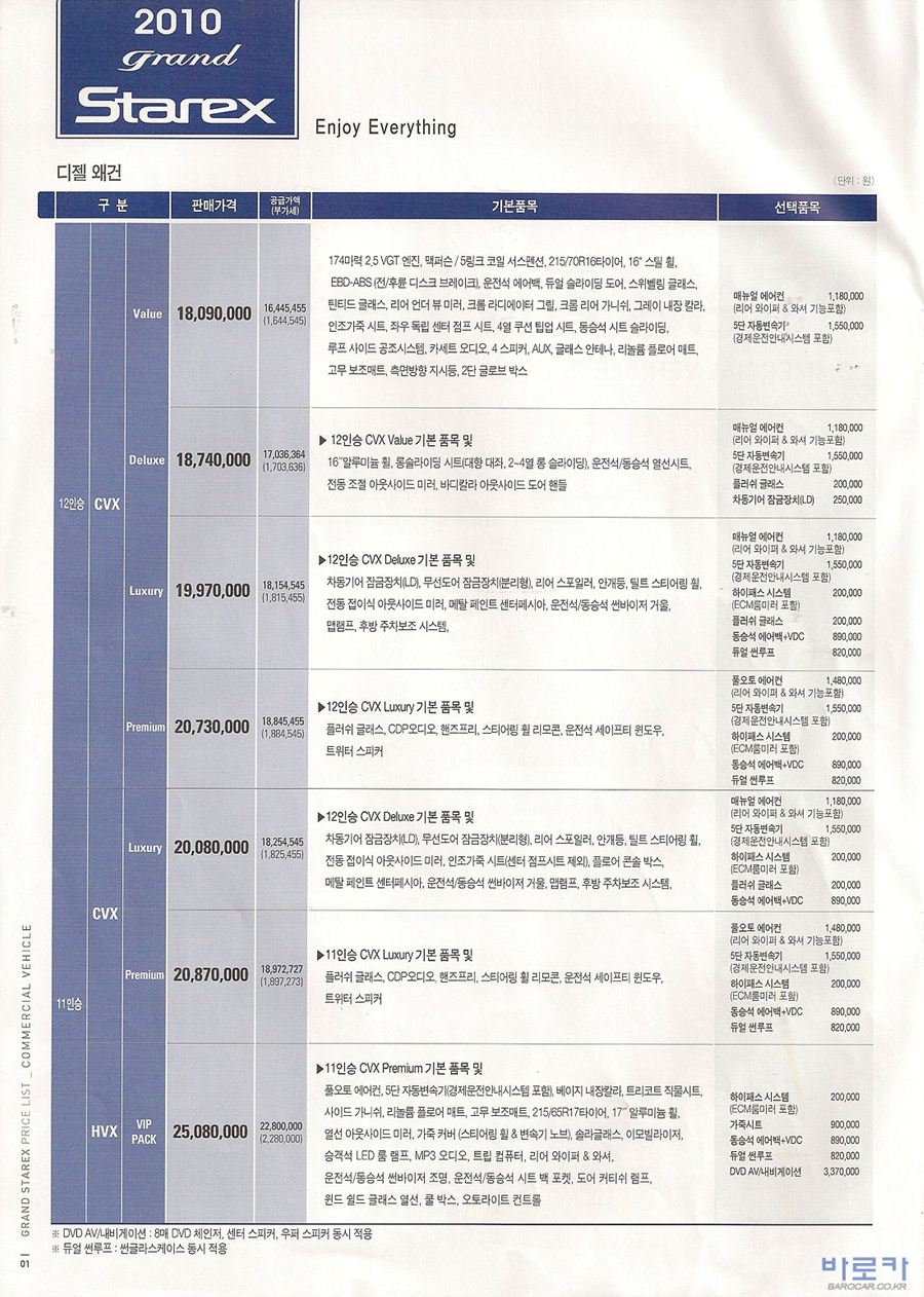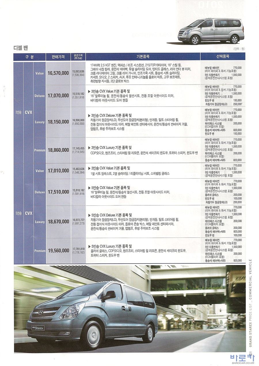 2009년 9월 그랜드스타렉스 신차가격표