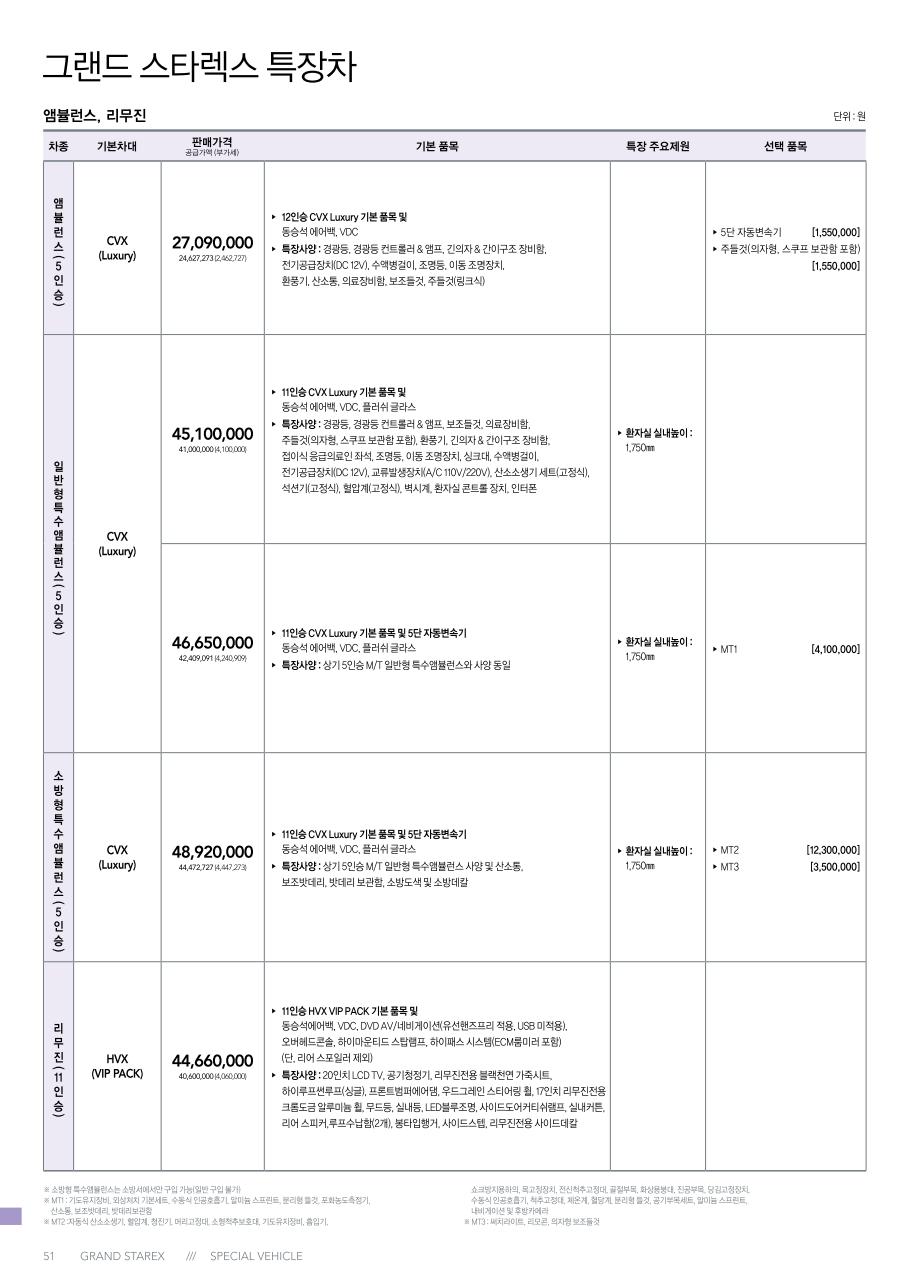 2010년 6월 그랜드스타렉스 특장차 가격표