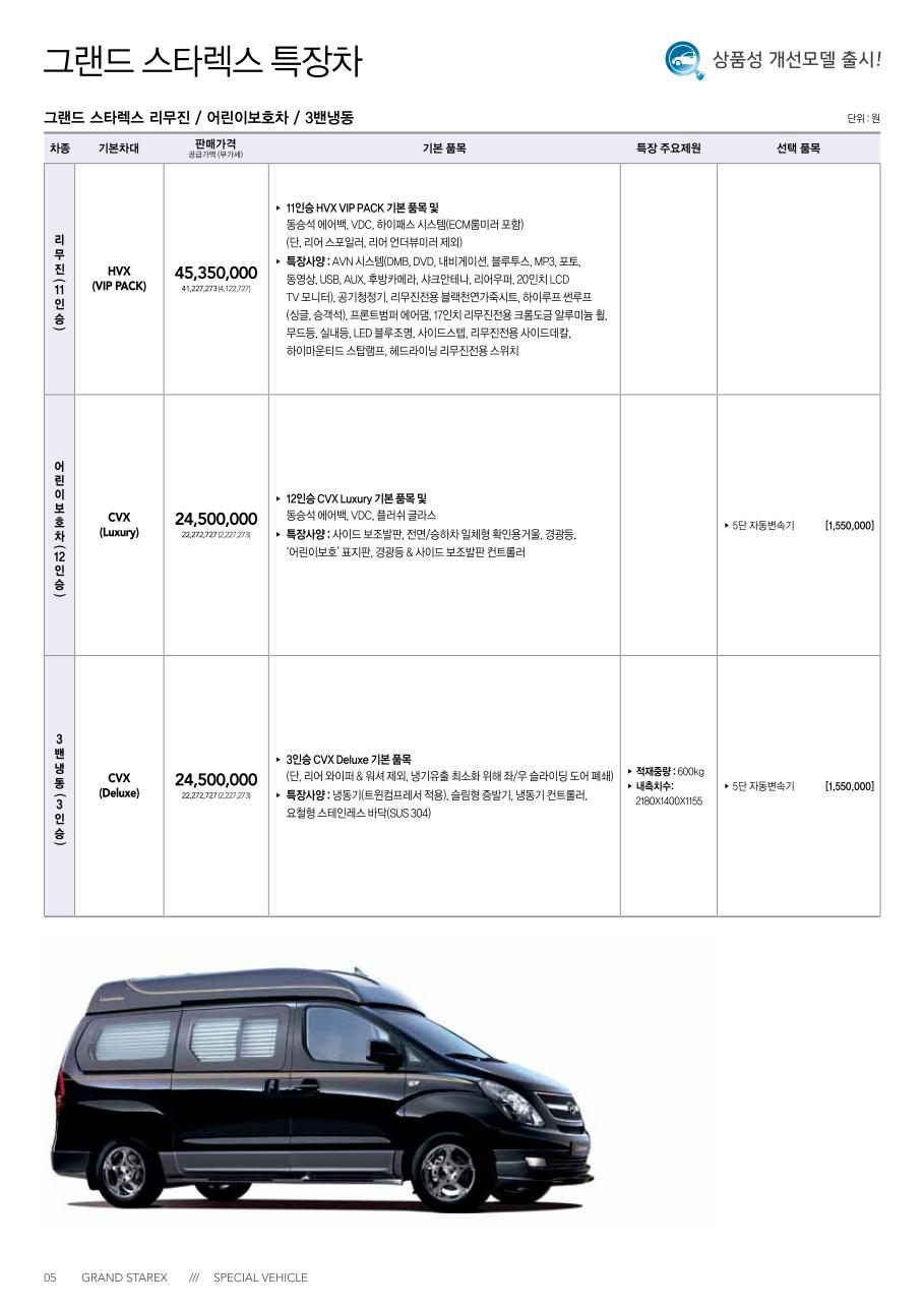 2011년 9월 그랜드스타렉스 신차가격표