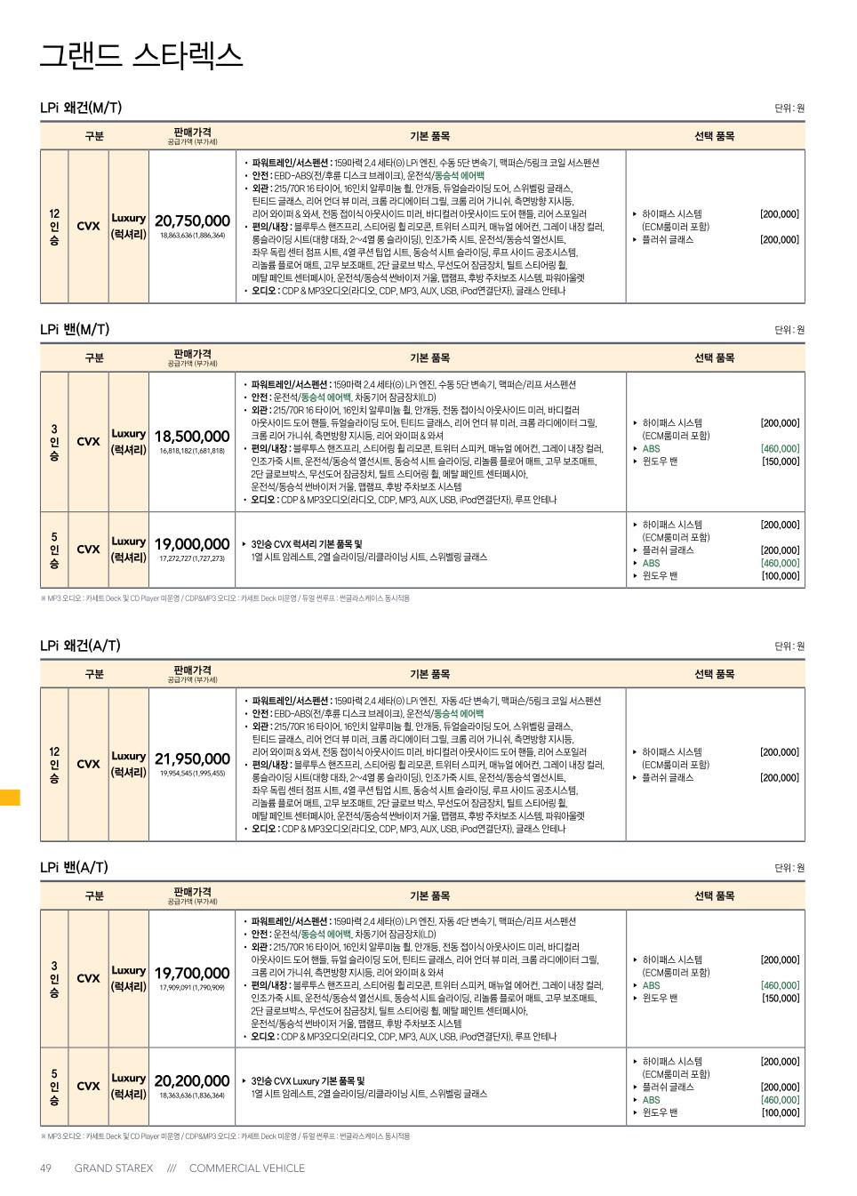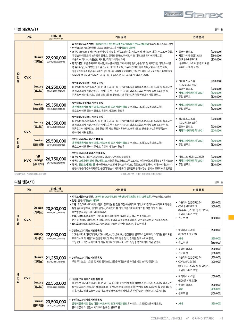 2012년 1월 그랜드스타렉스 신차가격표 (유로5 A-2 엔진 장착)