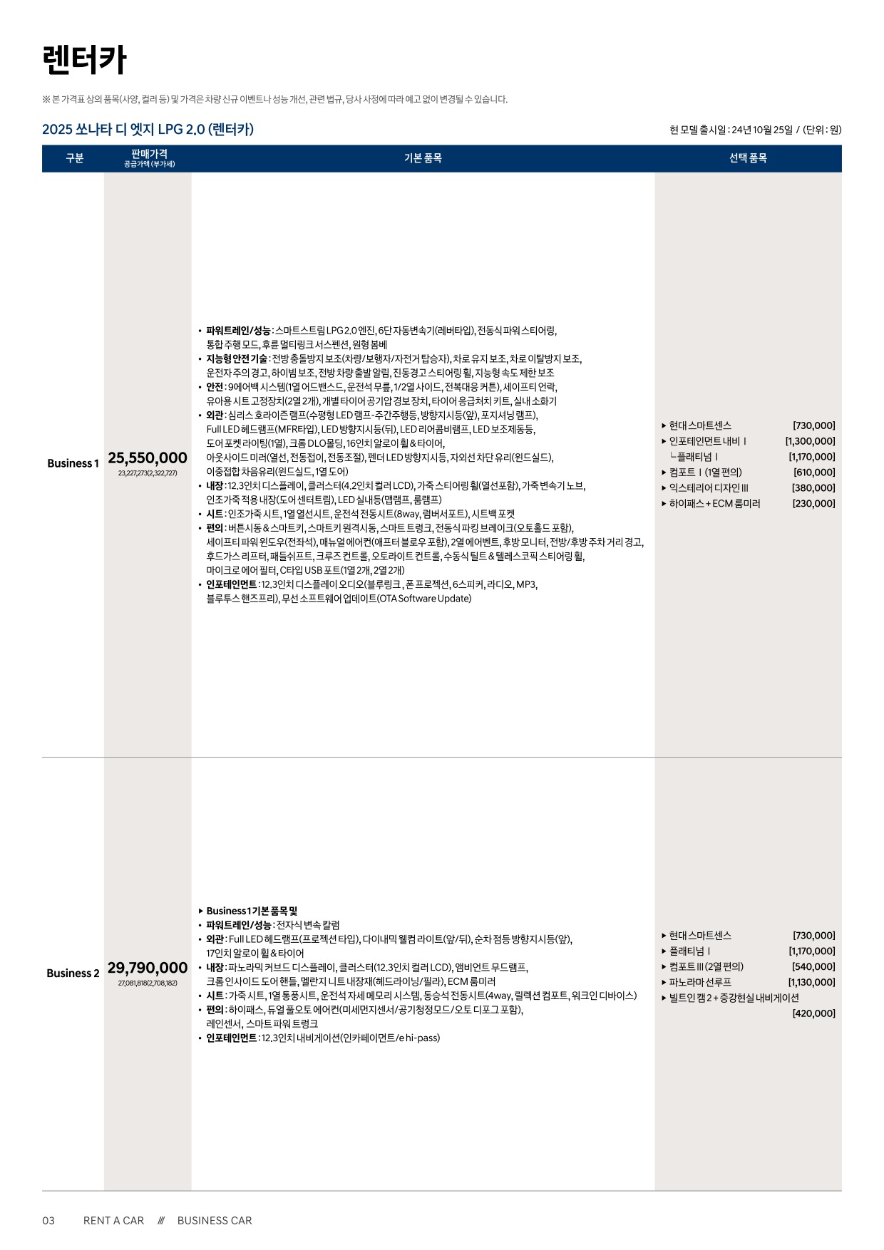 ※ 본 가격표의 모든 저작권은 해당 차량 제조사에 있습니다.