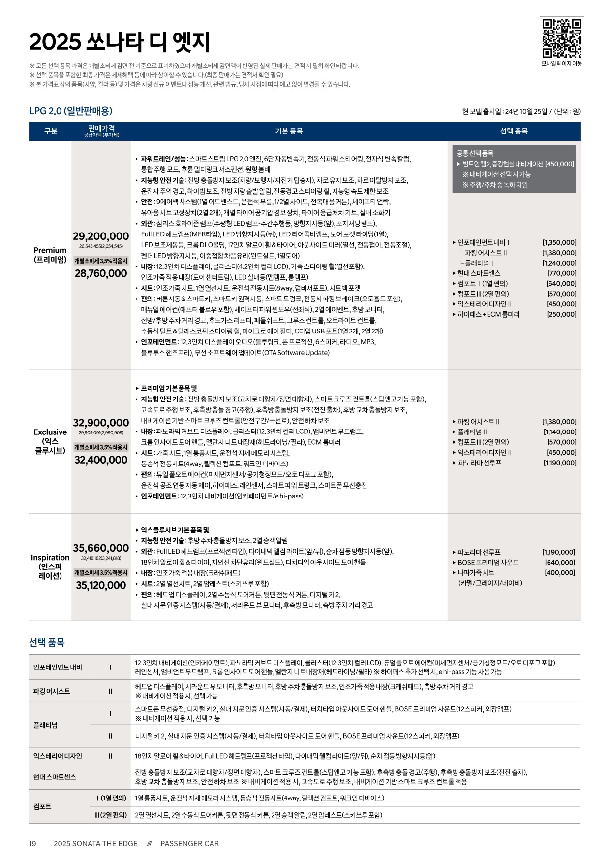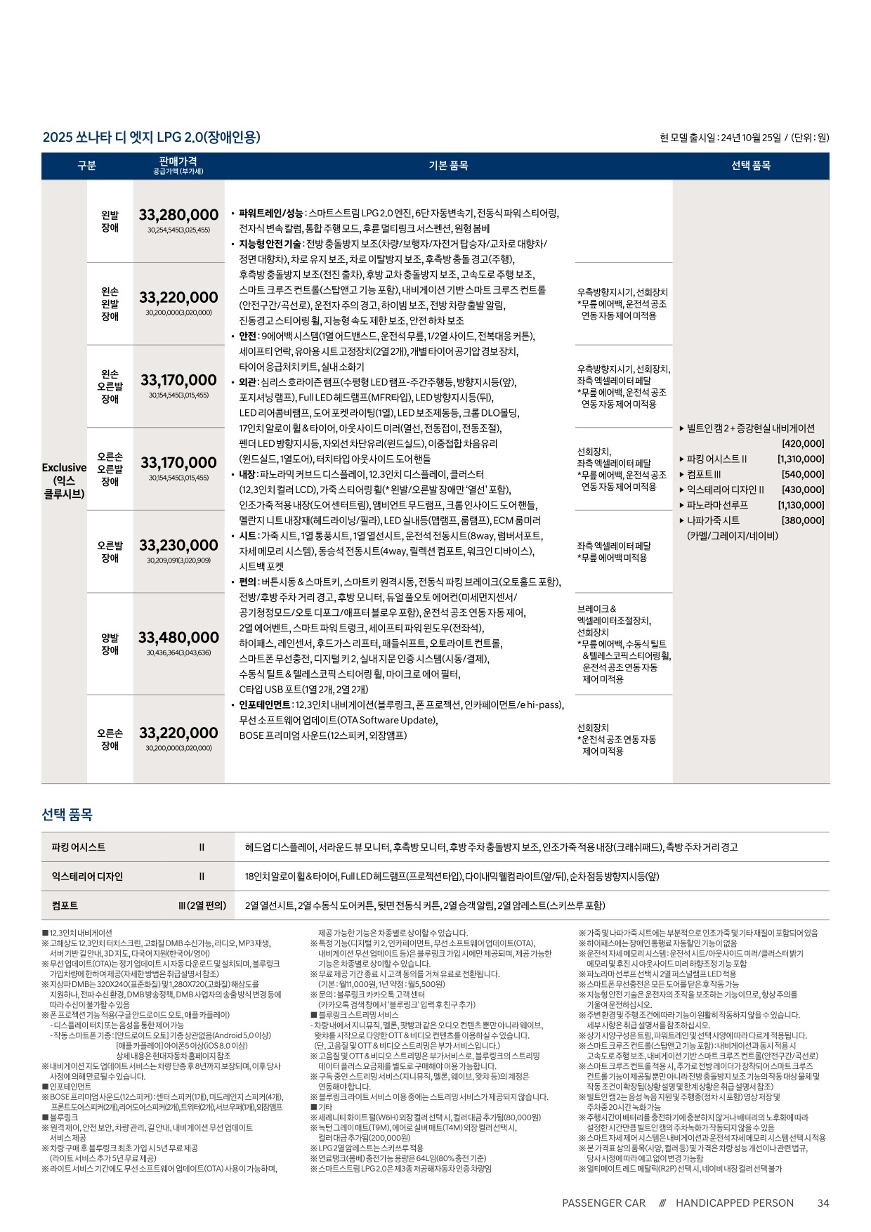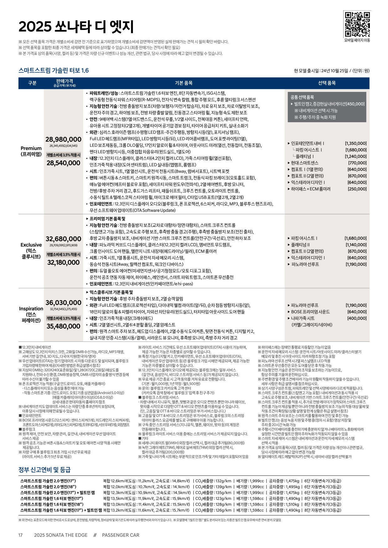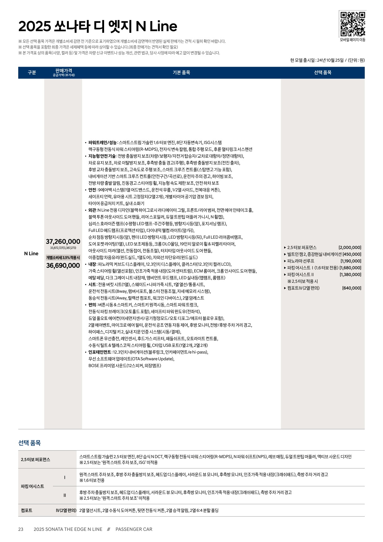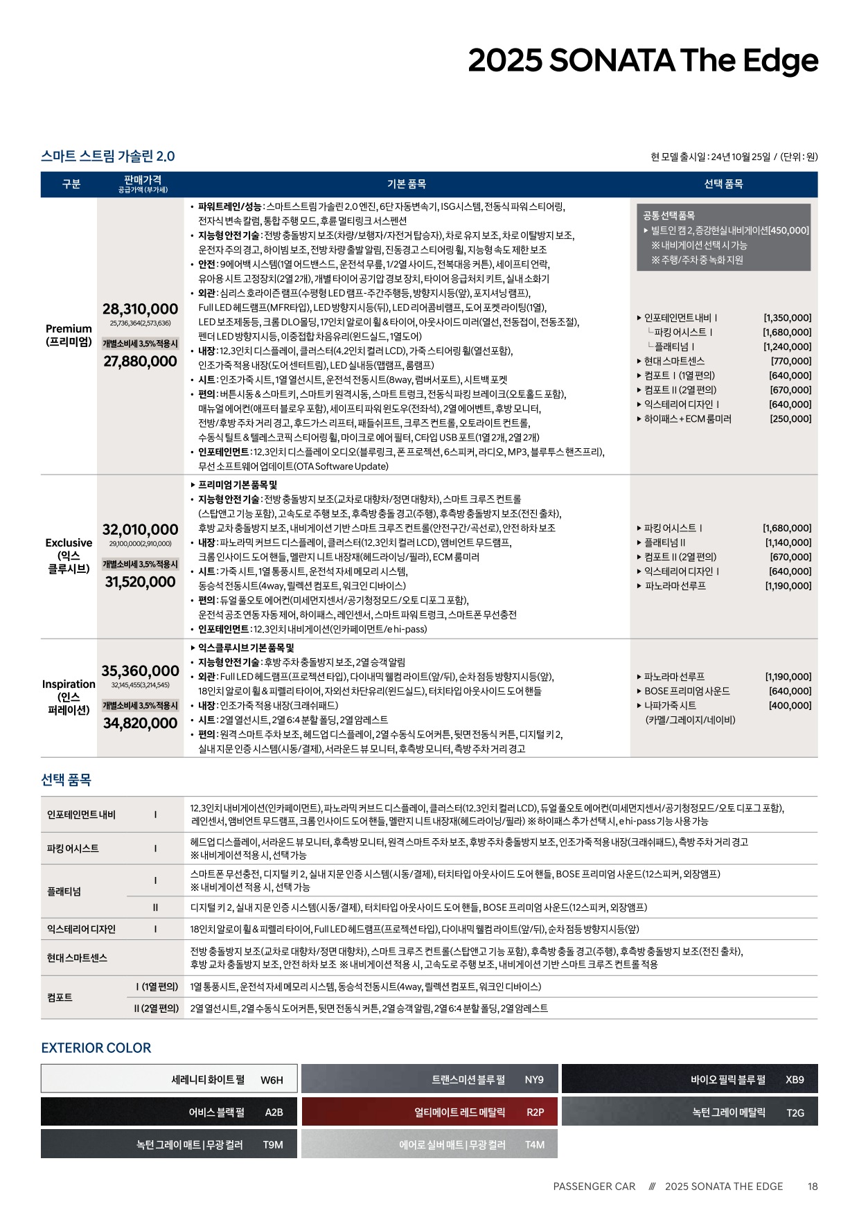 2025년 5월 쏘나타 하이브리드 신차가격표