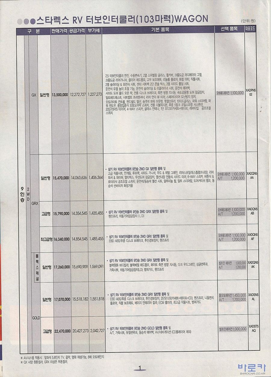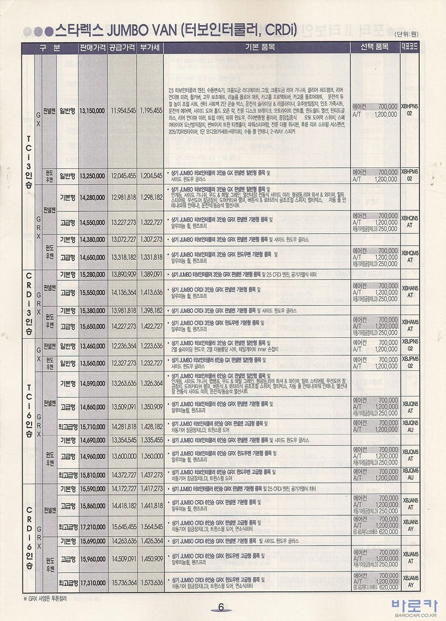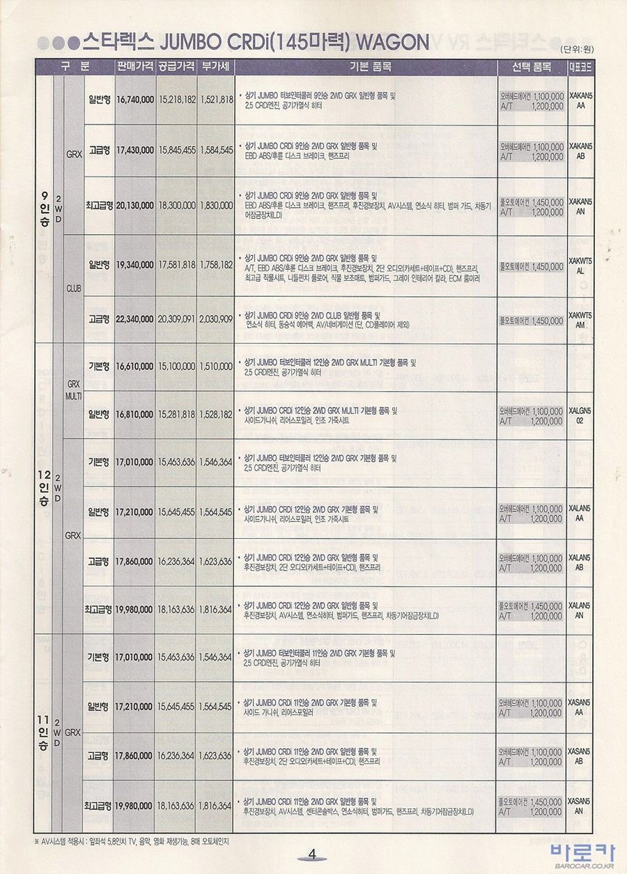 2006년 1월 스타렉스 신차가격표 (RV/점보/밴)