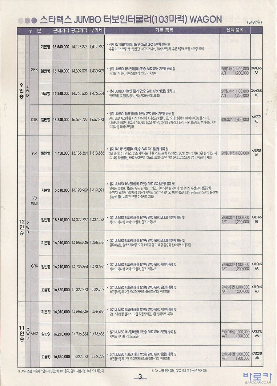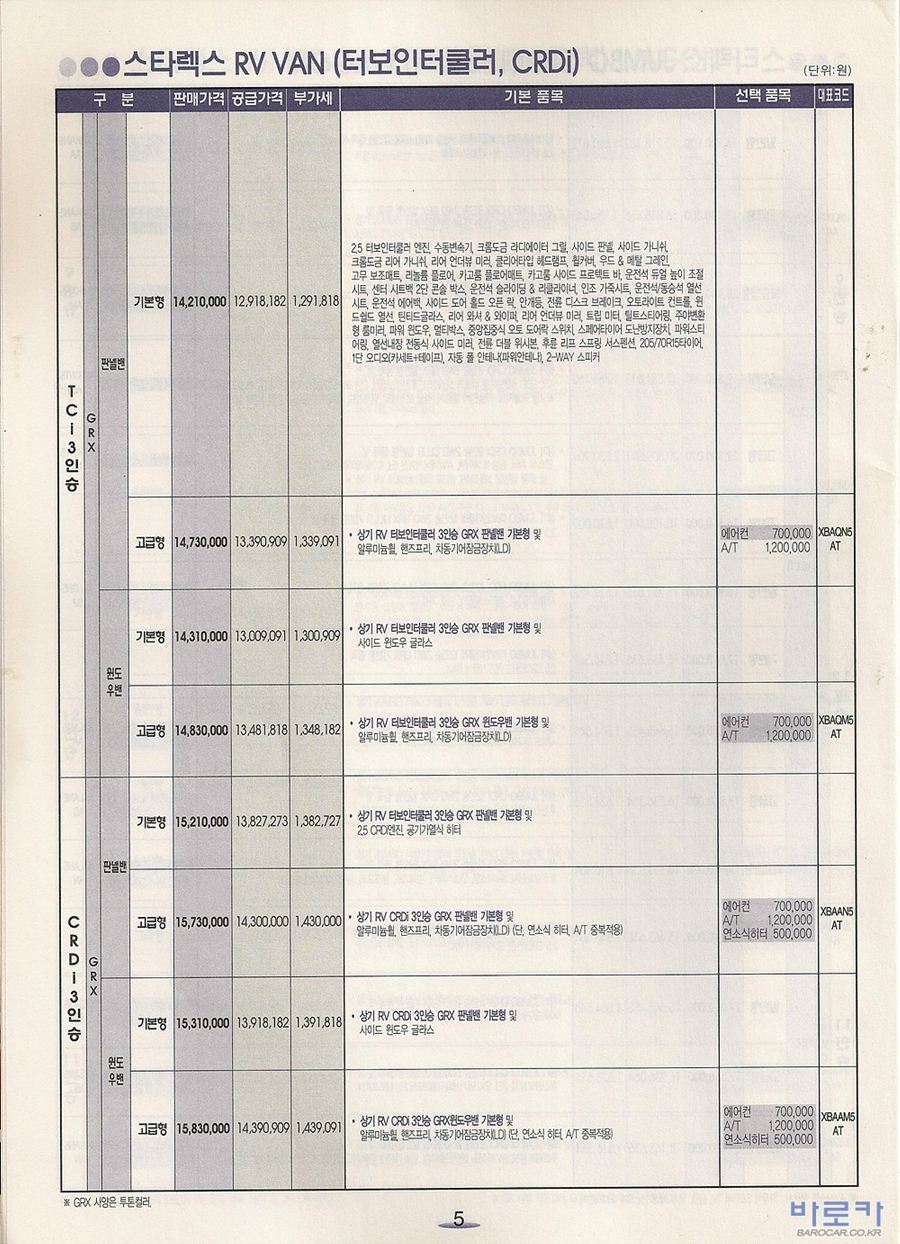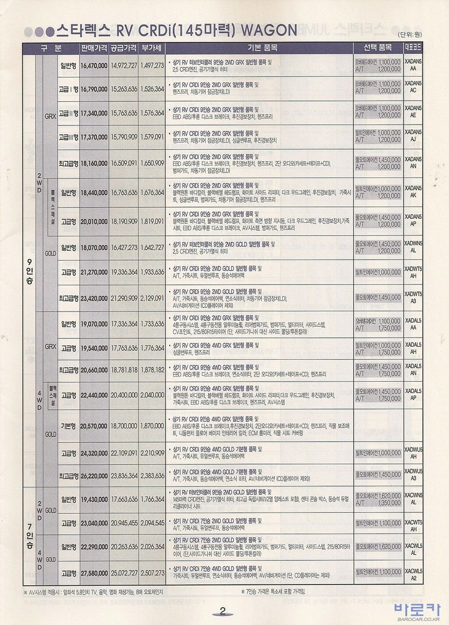2006년 1월 스타렉스 신차가격표 (RV/점보/밴)