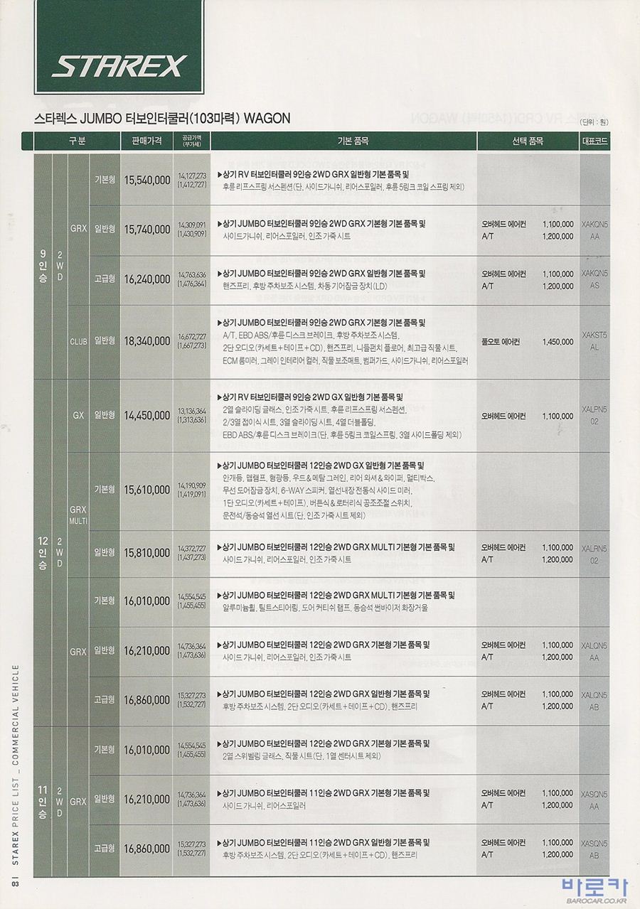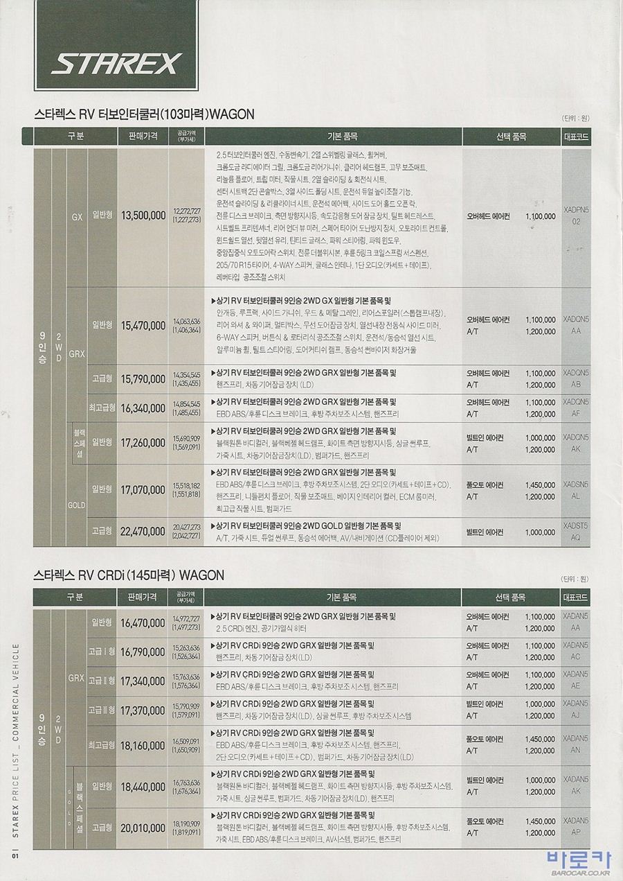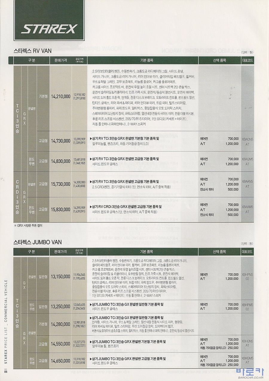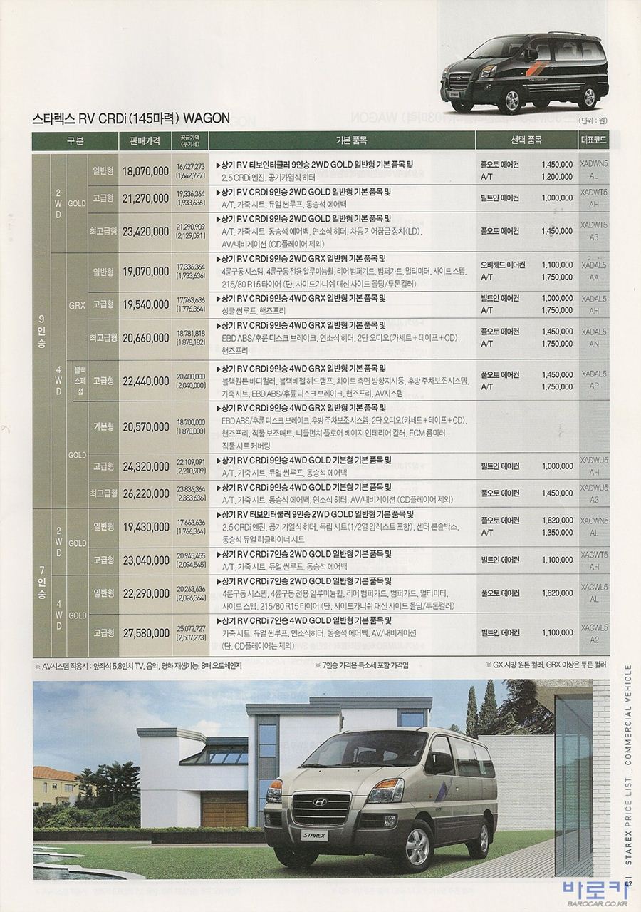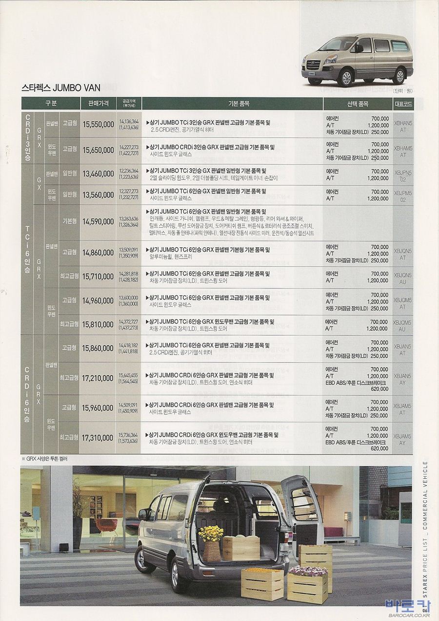 2006년 12월 스타렉스 신차가격표 (RV/점보/밴)