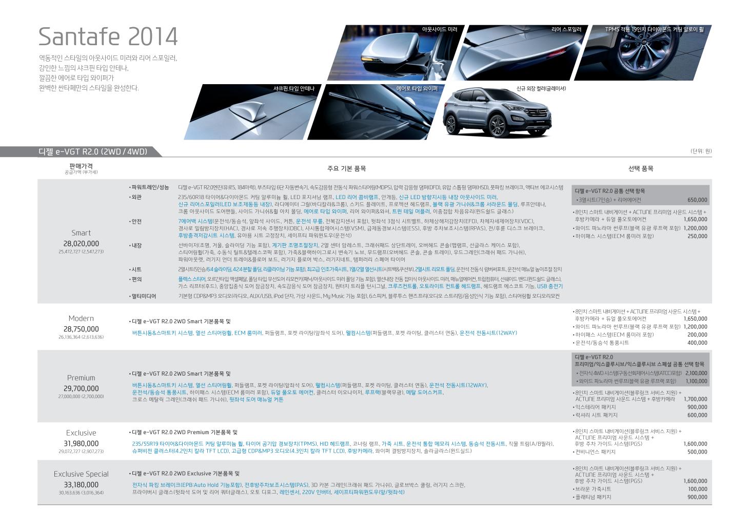 2014년 2월 싼타페 신차가격표