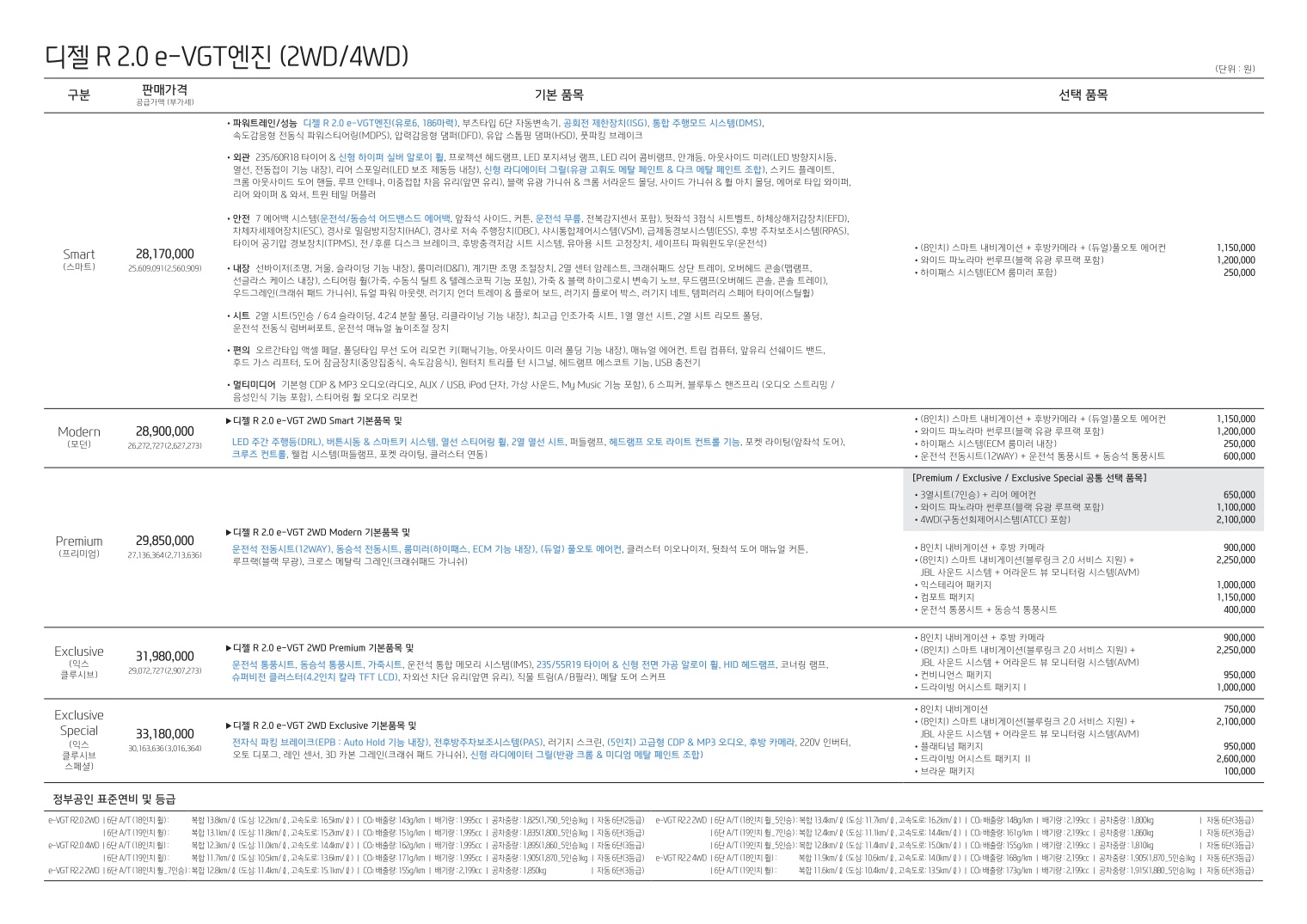 ※ 본 가격표의 모든 저작권은 해당 차량 제조사에 있습니다.