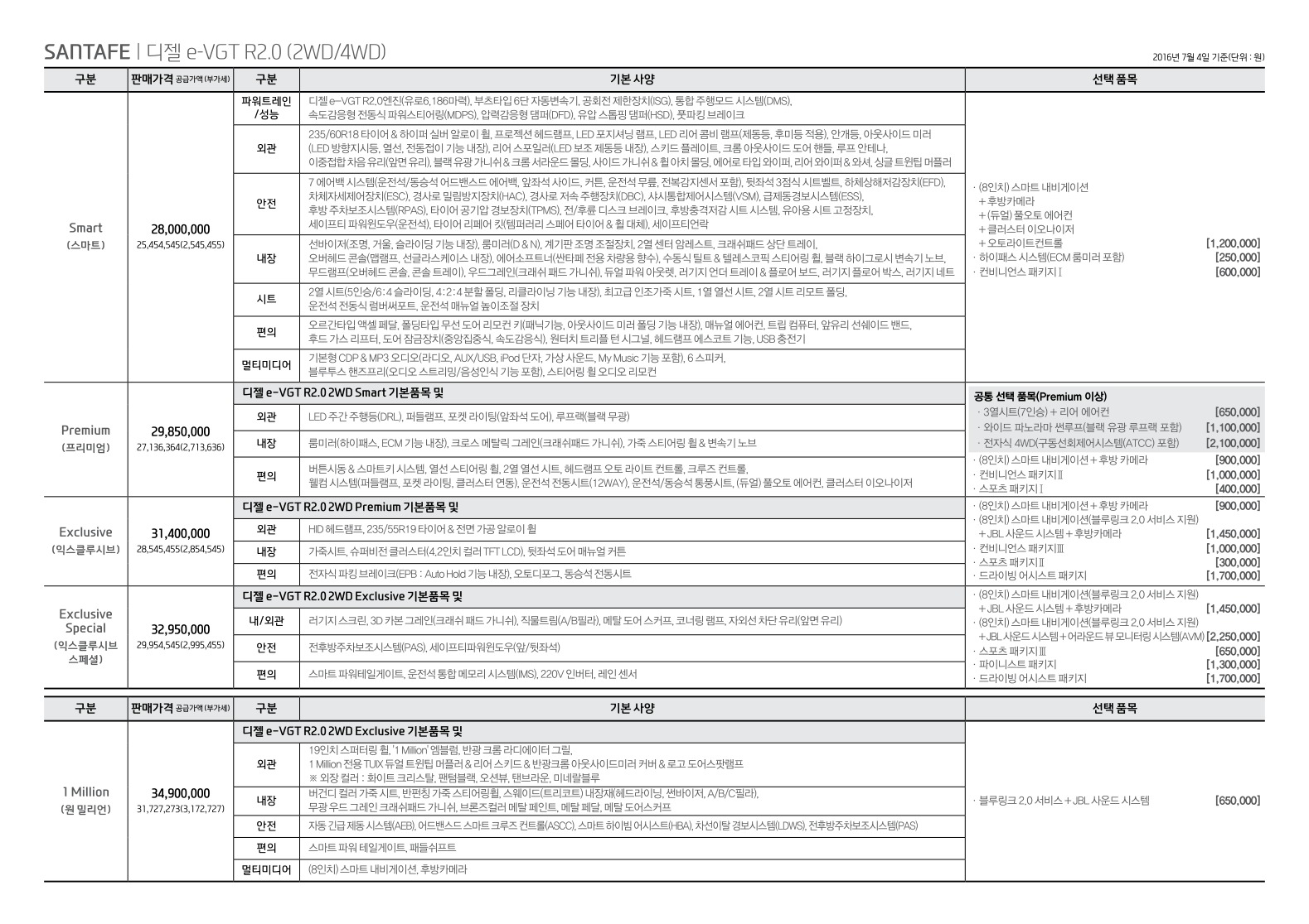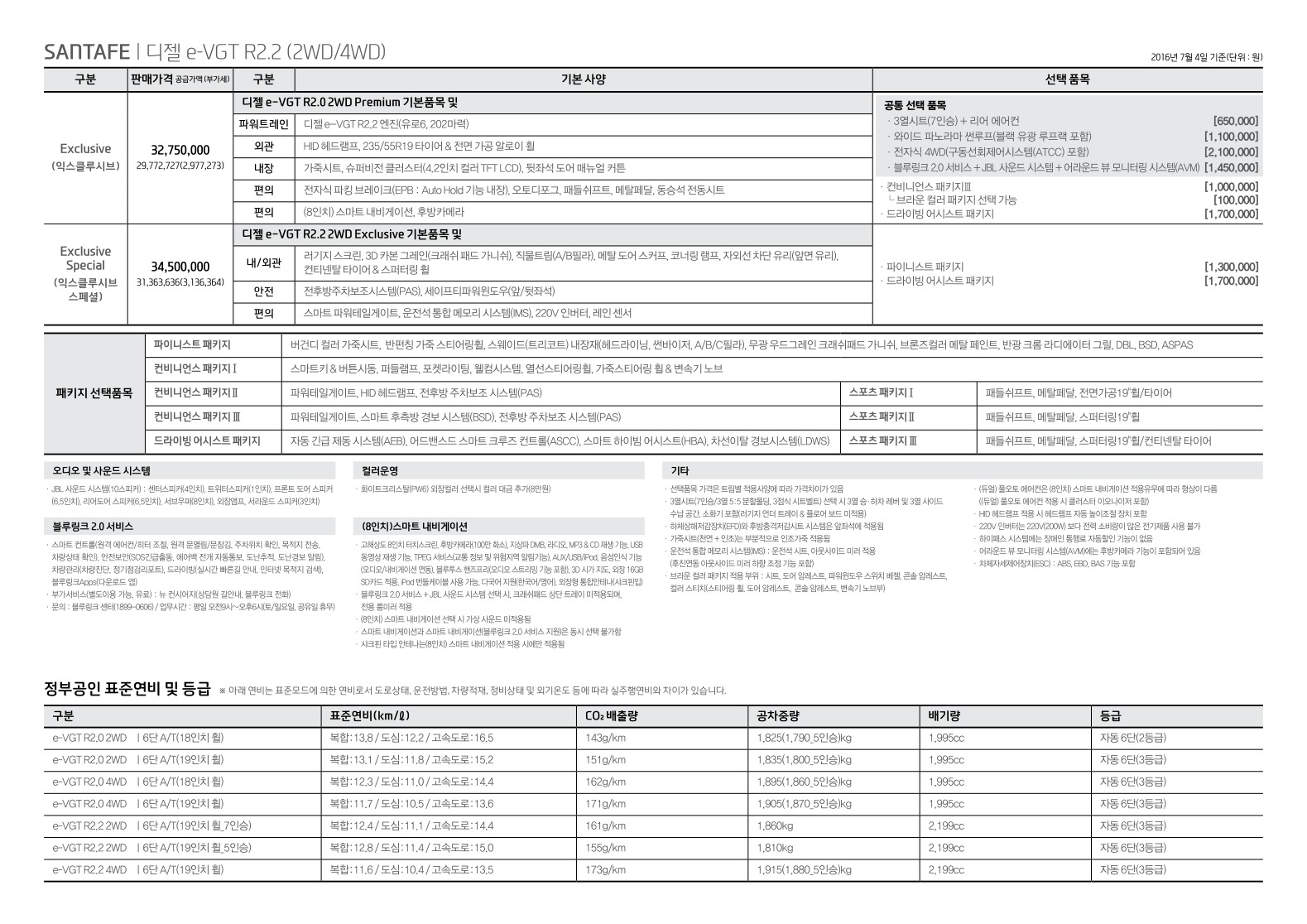 2015년 6월 싼타페 신차가격표 (싼타페 더 프라임 유로6)