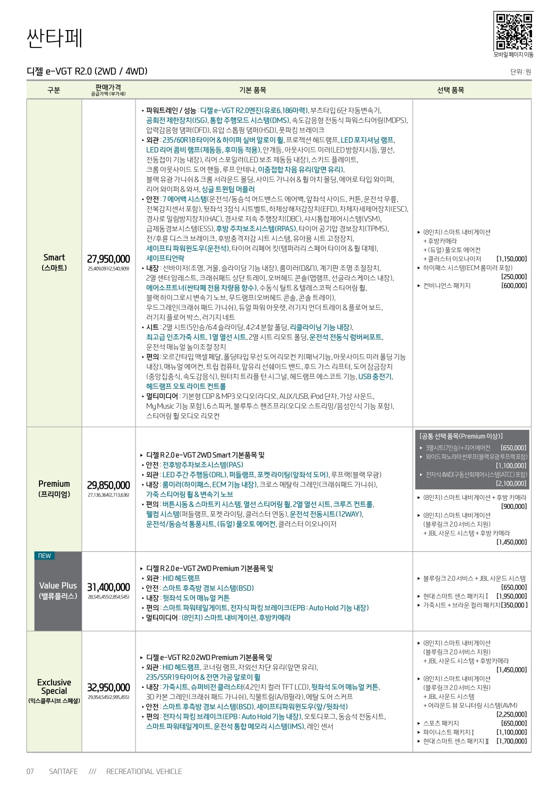 ※ 본 가격표의 모든 저작권은 해당 차량 제조사에 있습니다.