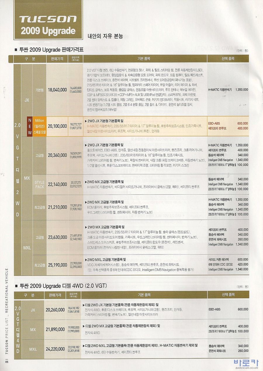 2009년 4월 투싼 신차가격표