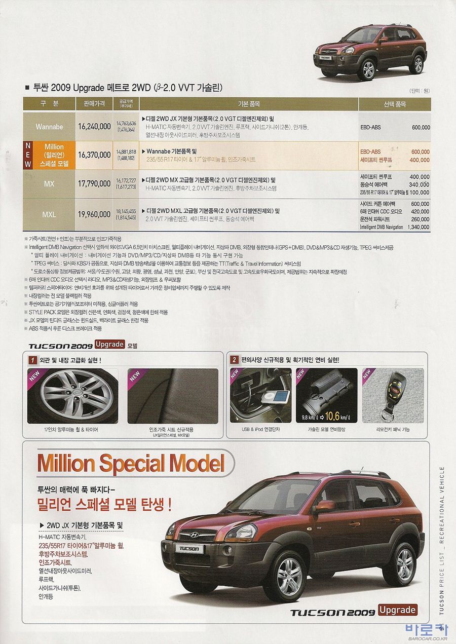 2009년 9월 투싼iX 신차가격표
